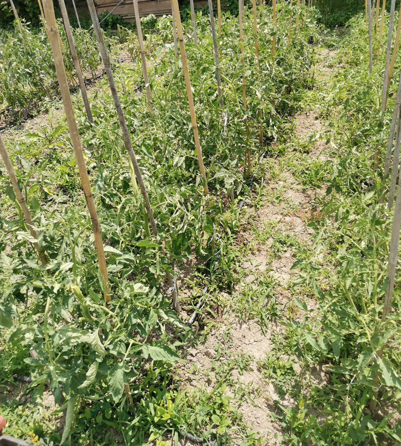 Доматите изглеждат здрави, да чукна на дърво, нямах време да ги нагледам корен по корен. За култучене и връзване са, но това ще е уикенда, засега само поливане ще получат.