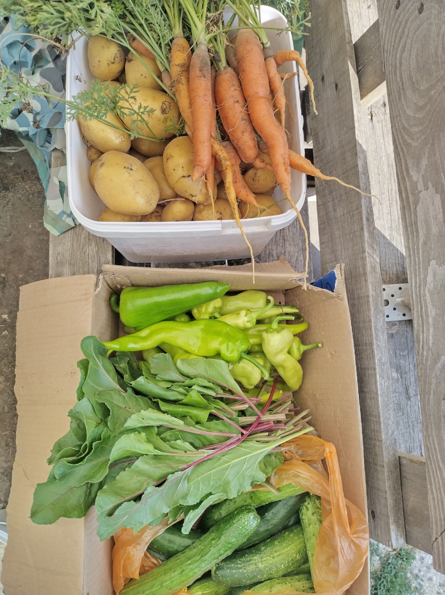 Моята втора и последна реколта за тази година. Първата беше преди две седмици, отчетох се шепичка чери и 1 доматче. Остана почистването на градината. Догодина, здраве и живот май ще се отказваме.