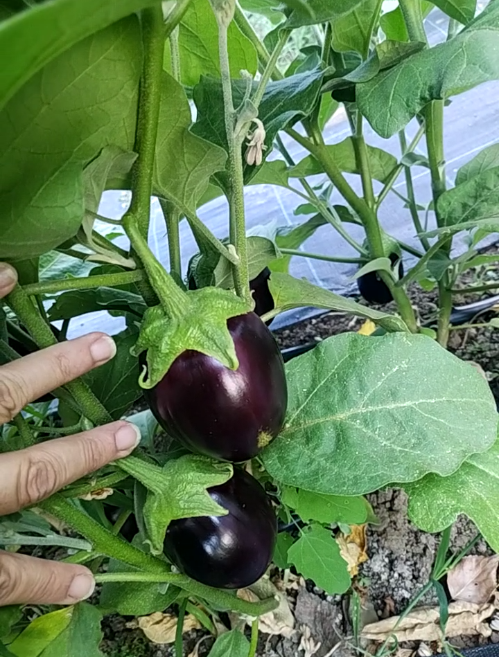 Има доста патладжани, в едната касетка зелените бяха 5 кг от мои семена, но са някак по-оребрени. В другата касетка зелените са от същата бройка растения но са 9 кг, като преди това бях подарила от този ред една непълна касетка. Останалата една жалка касетка е от брой растения отговарящ на другите две касетки, така че догодина май само зелени ще садя и то от купени семена. Единият патладжан беше килограм и 100 грама Simple Smile