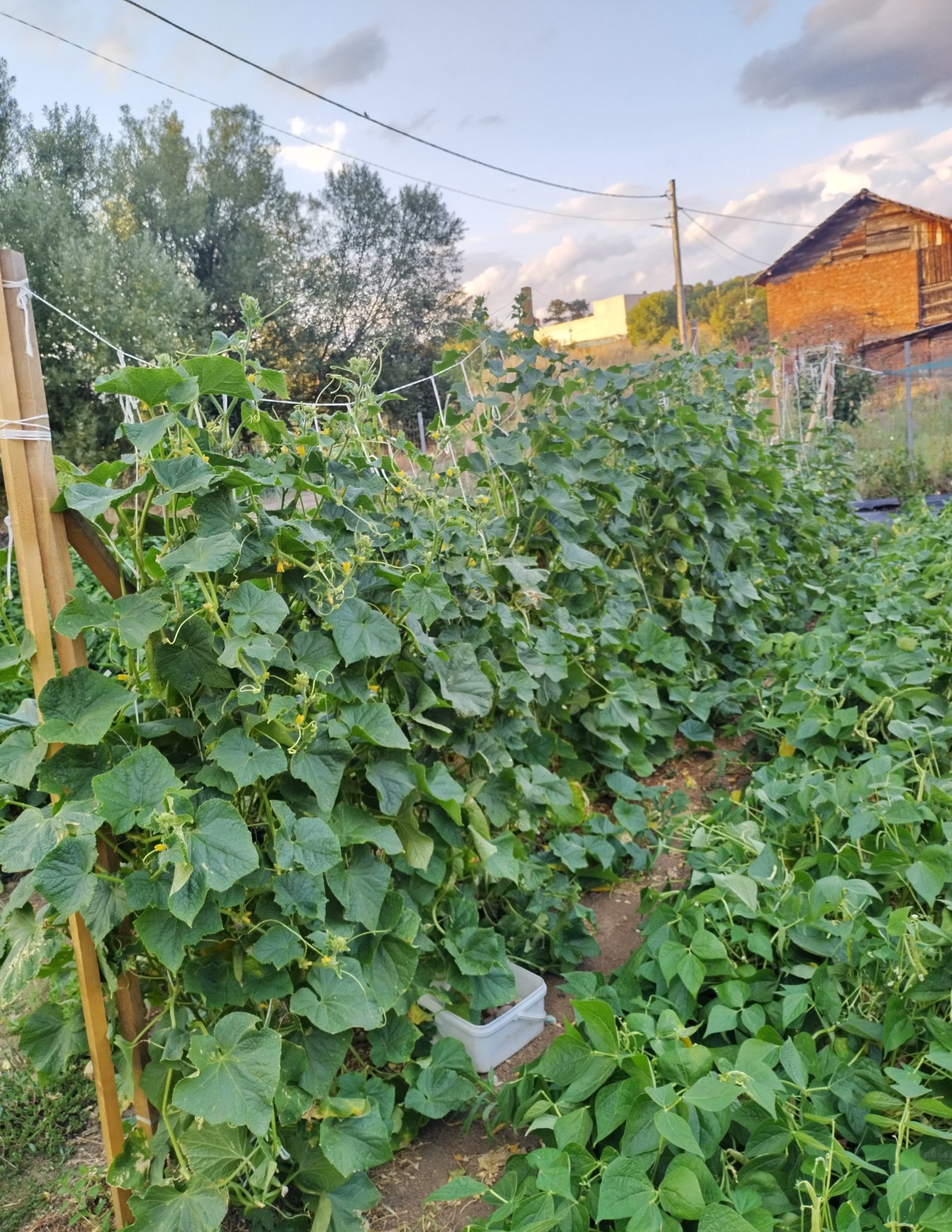 Ние също имаме проблем с водата, благодарение на безхаберни управници на местни нива. Не може да оставиш половин Тракия без поливна вода от безстопанственост и безхаберие. Имахме поливна вода във всяка къща, освен на полето, от миналата година няма ни на полето, ни в дворовете. От време на време сме и на режим на питейната. В кладенеца имахме доволно количество вода до тази пролет. Поливахме по цяла нощ декар засаден двор без дори да намалее, тази пролет изчезна просто, изпари се. След няколко дни отново се появи, но вече е прекалено малко, едвам поливаме. Догодина живот и здраве ще редуцирам насажденията, ще съобразя културите с водата и горещините. За пипер знам точно кои сортове са подходящи, домати също. Повече експерименти с холандски домати няма да си правя, не са моето с изключение на черита, но те изгарят от многото слънце. За сметка на това имам рет корена пипер, холандски хибрид, които има чушки по повече от педя дълги и пет пръста широки. Ще ги снимам утре, ако изобщо има нещо след бурята. В изявление  на кметовете на двете засегнати общини в района нашето село не се споменава като пострадало, но чак не ми се вярва, две села до нас са силно пострадали, вчера очакваха електричеството да се възстанови до петък там.