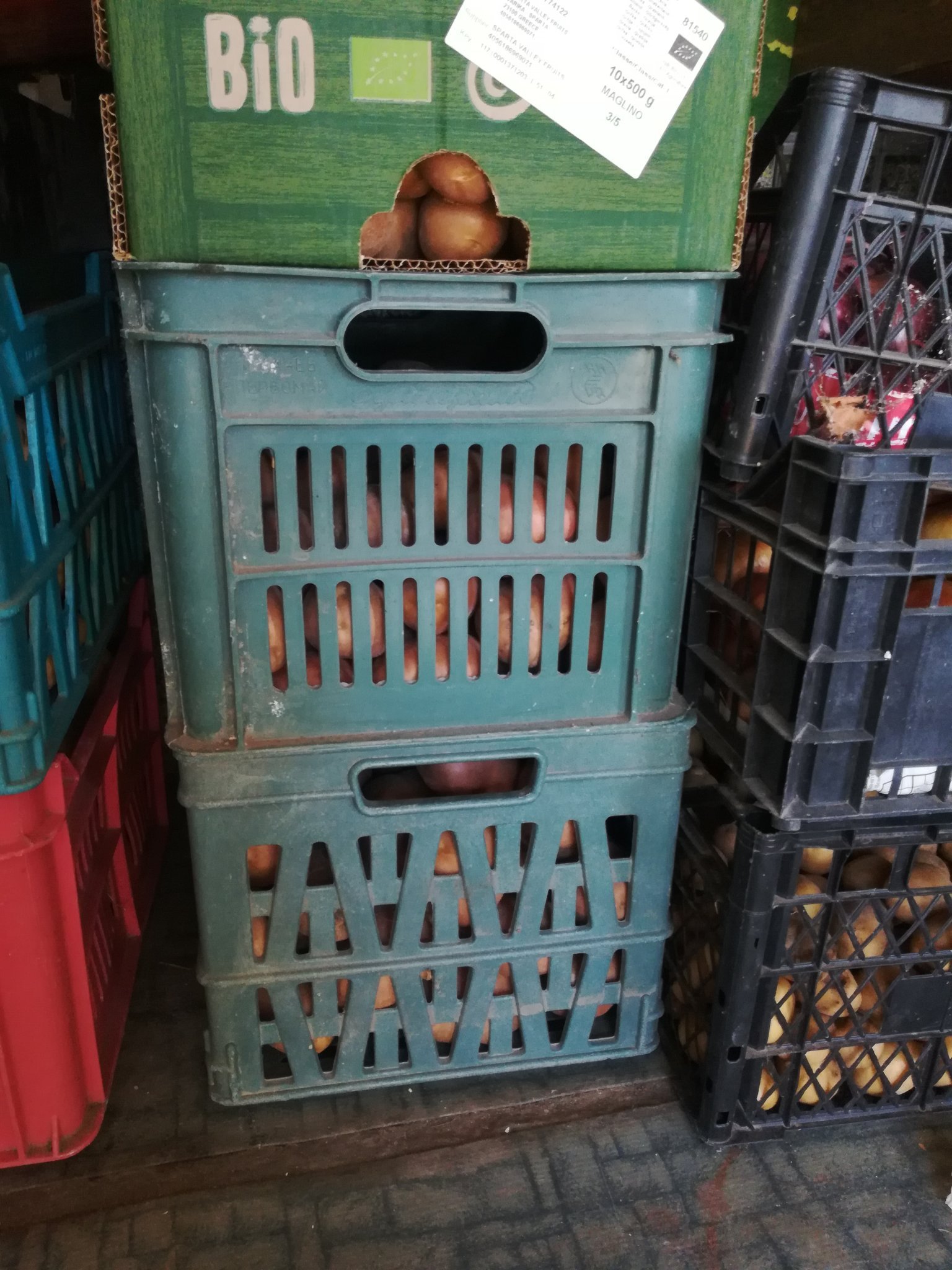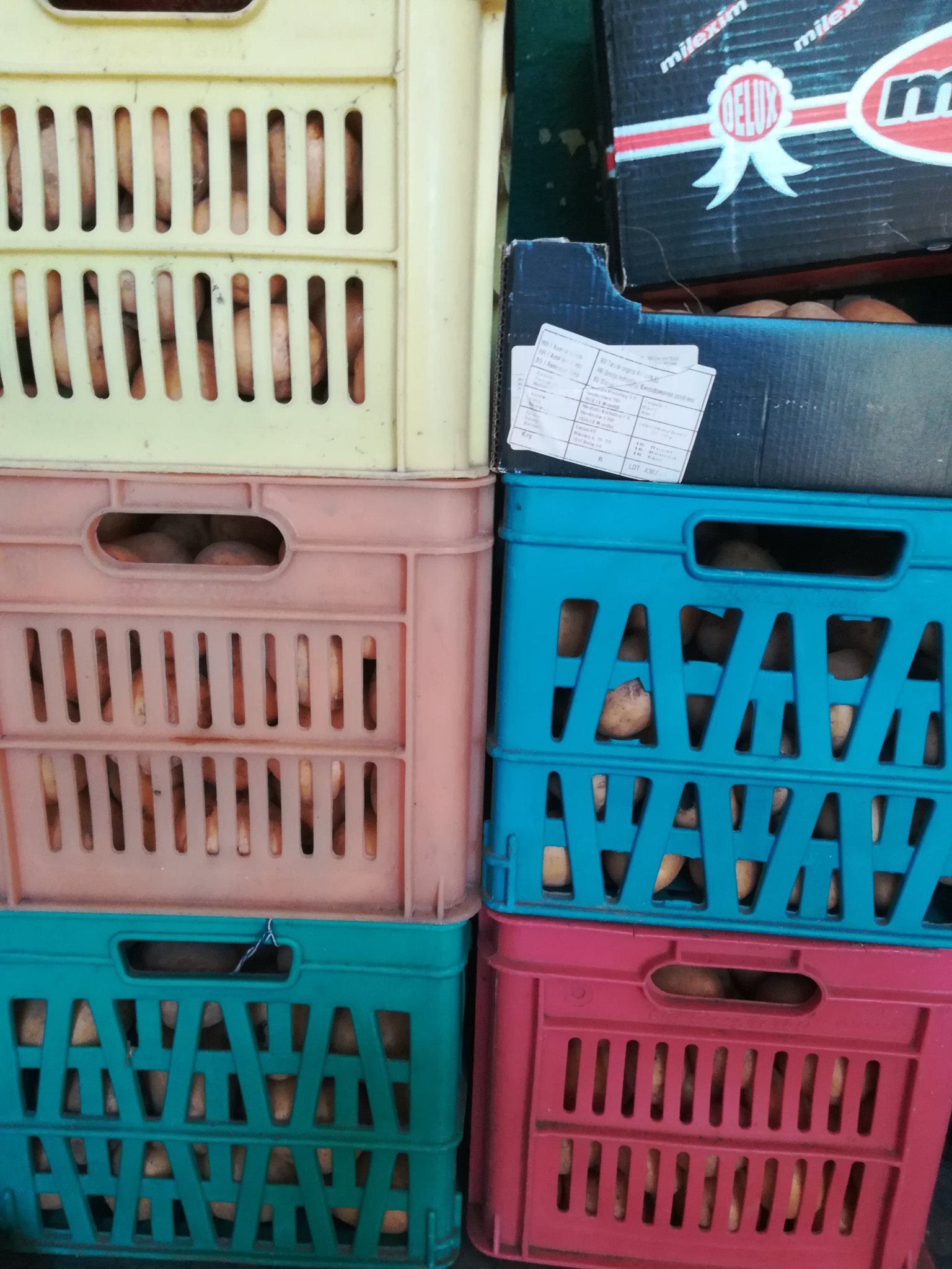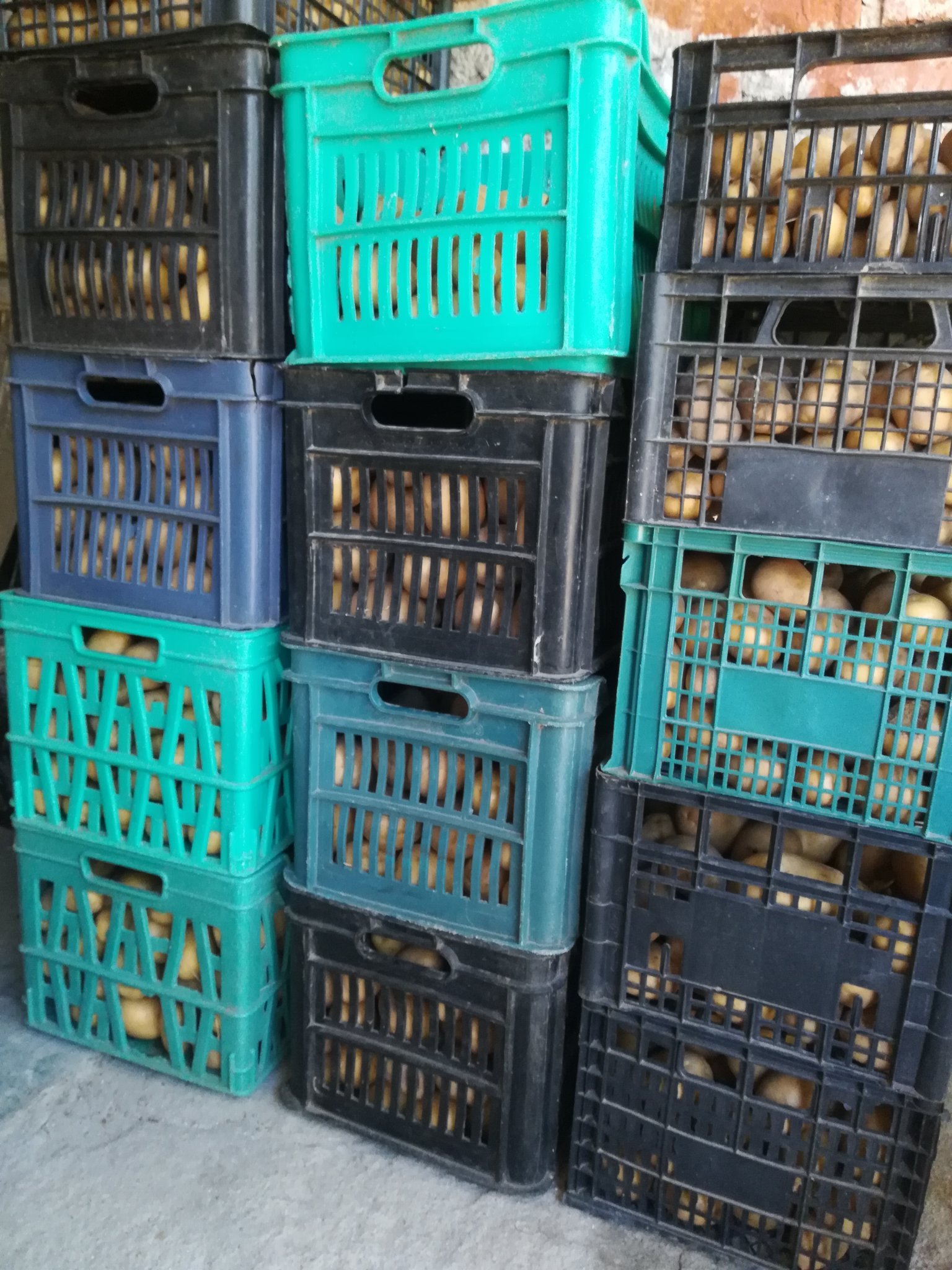Картофите са подредени/преди това проверени, че имаше няколко развалени/ - над 20 касетки. Другата седмица 2-3 касетки заминават, по нататък пак ще си вземат.
