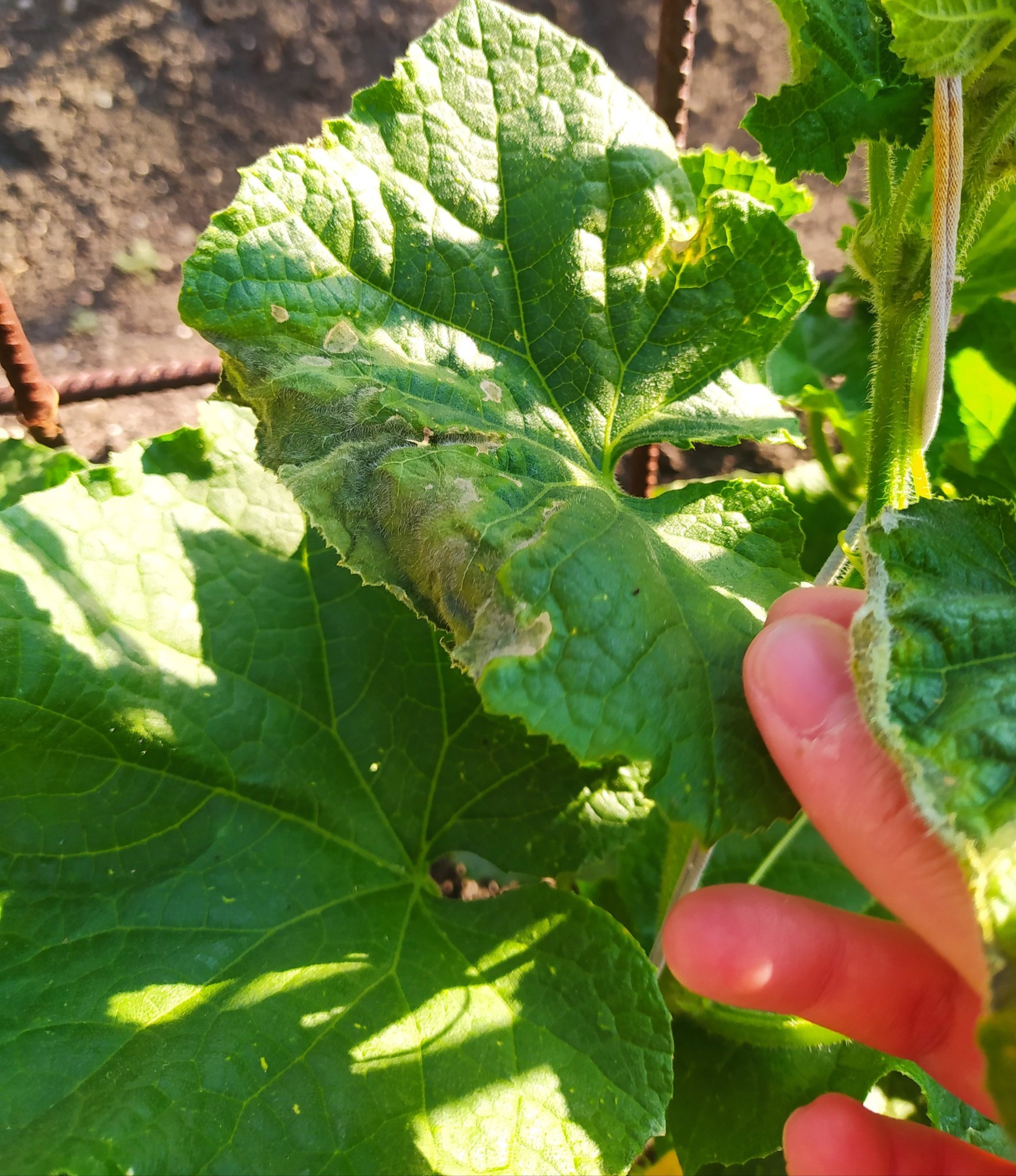 Пиперът ми отдалече изглежда перфектен, няколко от комшиите вече се изредиха да питат какво съм го правила, че бил такъв дебел. Отблизо си е трагедия, нагърчени листа, явно от въшките.