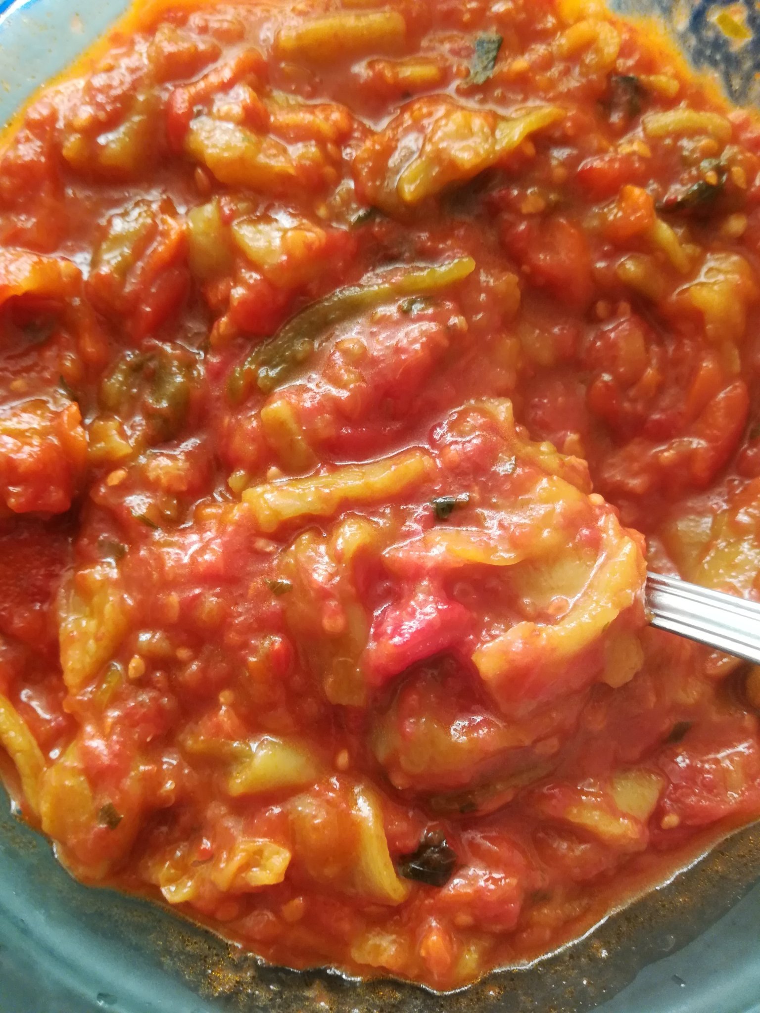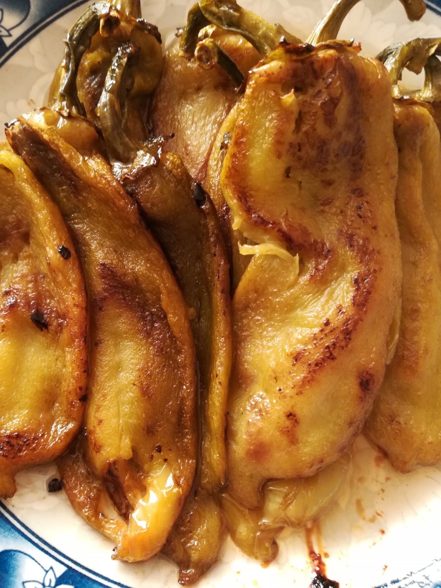 Направих любимо лятно ястие, пържени цели чушки с доматен сос от собствената градина.