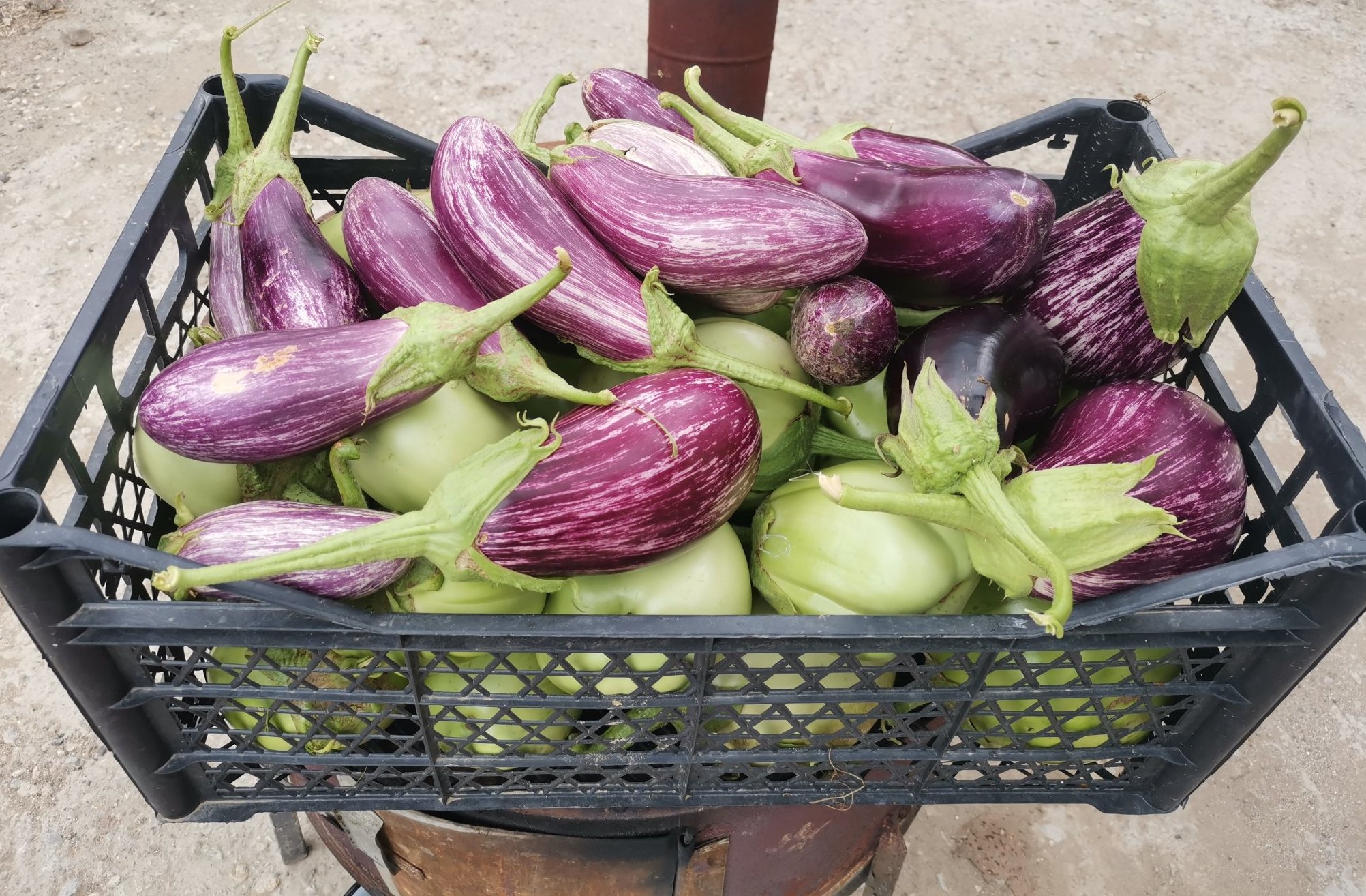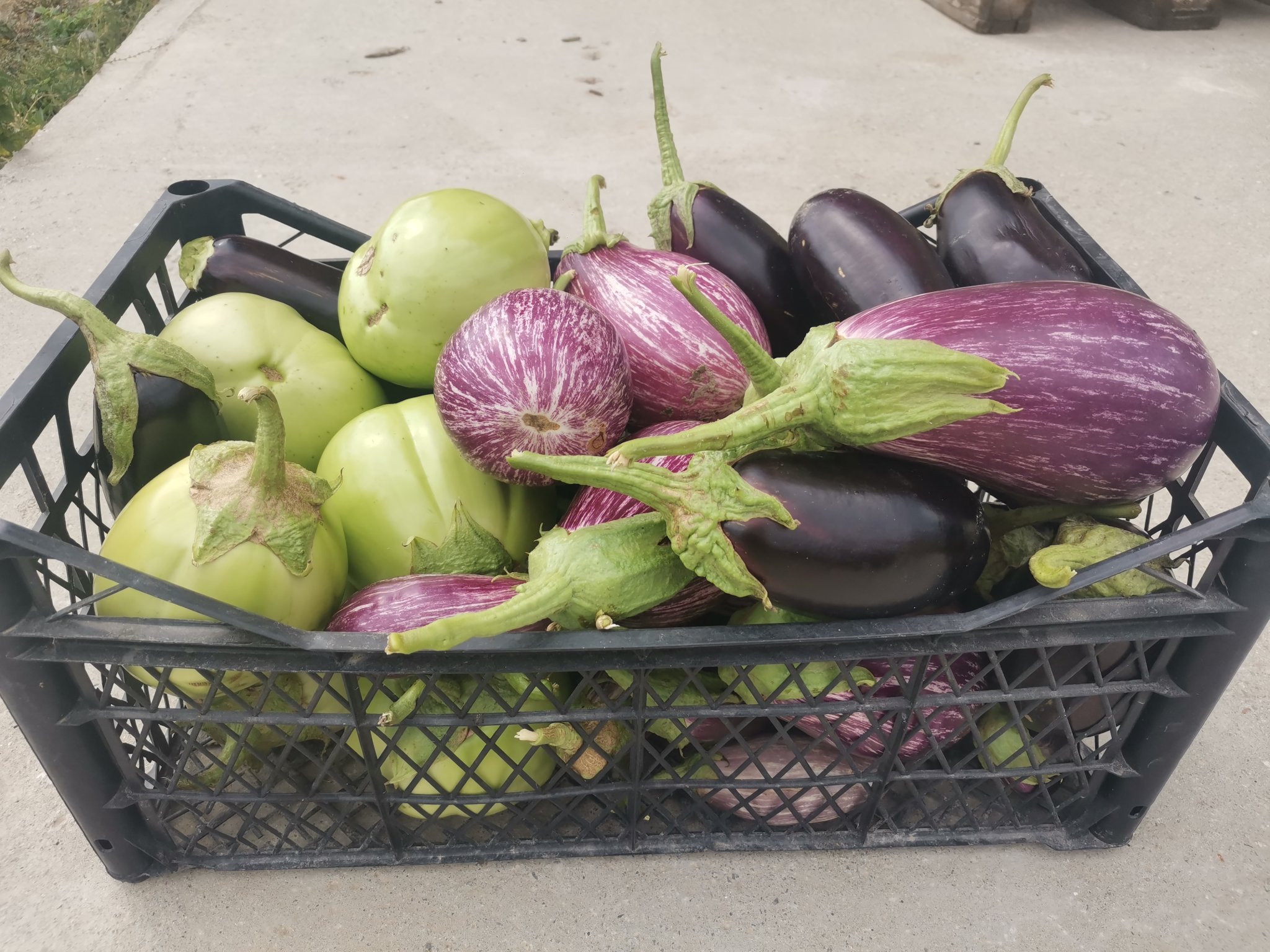След касетата патладжан подарък миналият уикенд на приятелка сега пак имах една. Но от единият ред с тънкия патладжан буквално нямам продукция и е пълна загуба на време и усилие. От шареният едър съм доволна, черният става. Догодина планирам само зелен и едър Шарен.