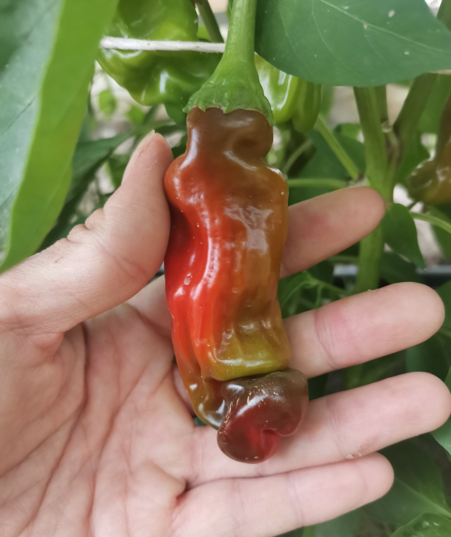 Има корени с по една чушка, което хич не ми допада. Догодина ще видя да пробвам като София на половината пипер нещо да го подбутна. След като разпита нея и рових в Интернет уж имам някакъв план. Тя е култучела, но при мен май няма много смисъл, защото точно че нямам разклонения а едно дълго стъбло с един плод ми е проблема. Препоръчва се ако е слаб пипера в началото да се култучи, за да заякне, а после да се пензира. Прещипване на върха, за да се разклони и да роди повече. Края на август може пак да се пензира и да се махнат цветовете за да се стопира растежа на нови и да има време зелените да узреят.
