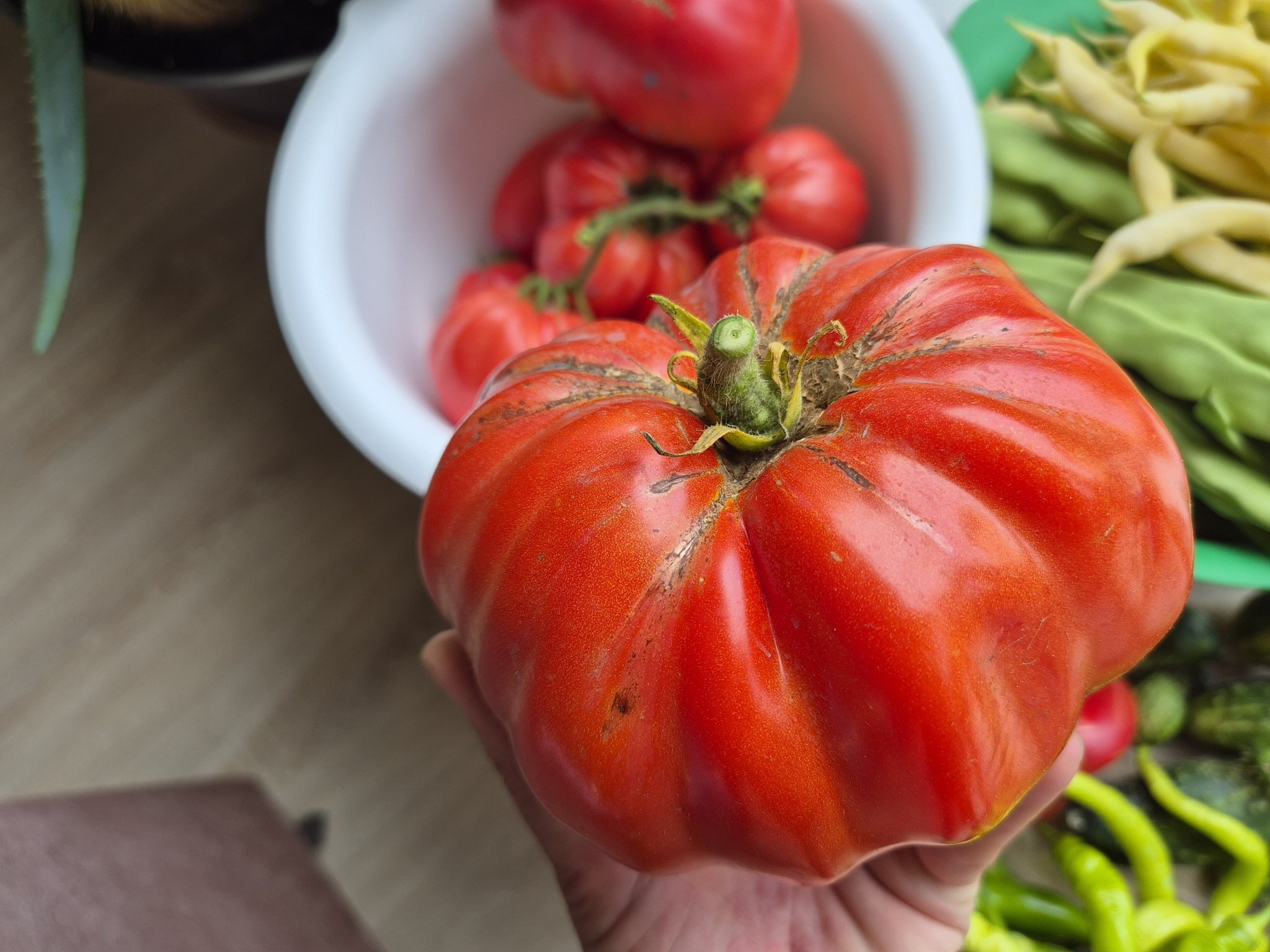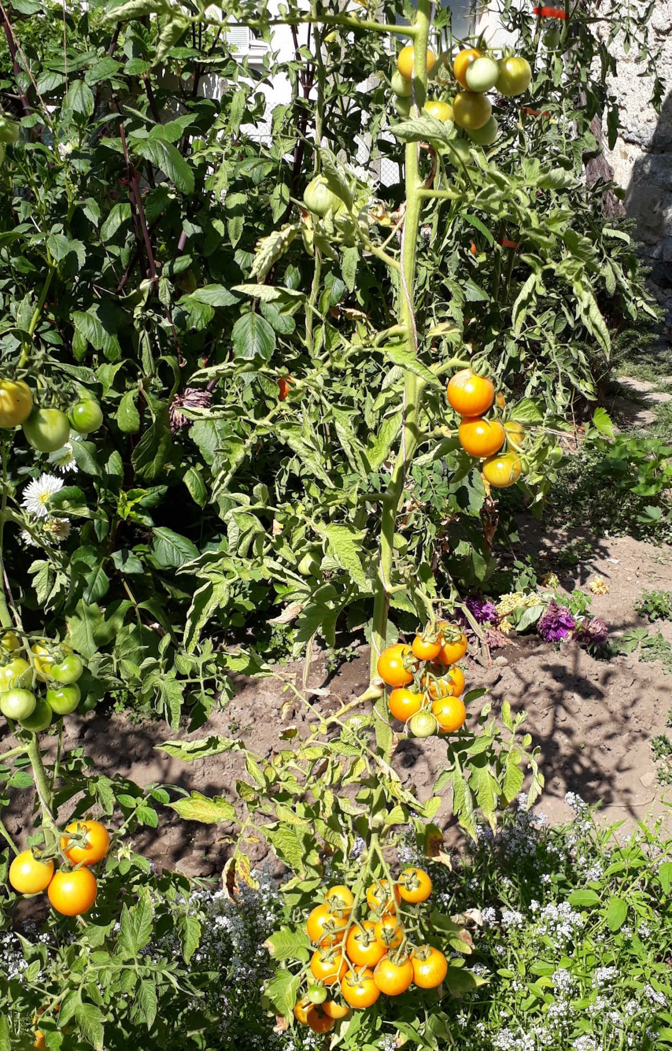 От доматите тази година най-добре се представят Розовите домашни, отрупани и едри, Меделина, Френският червен домат който си събрах семе миналата година. Той най-много ми напомня на селските вкусни червени домати от детството и пак ще го сея.