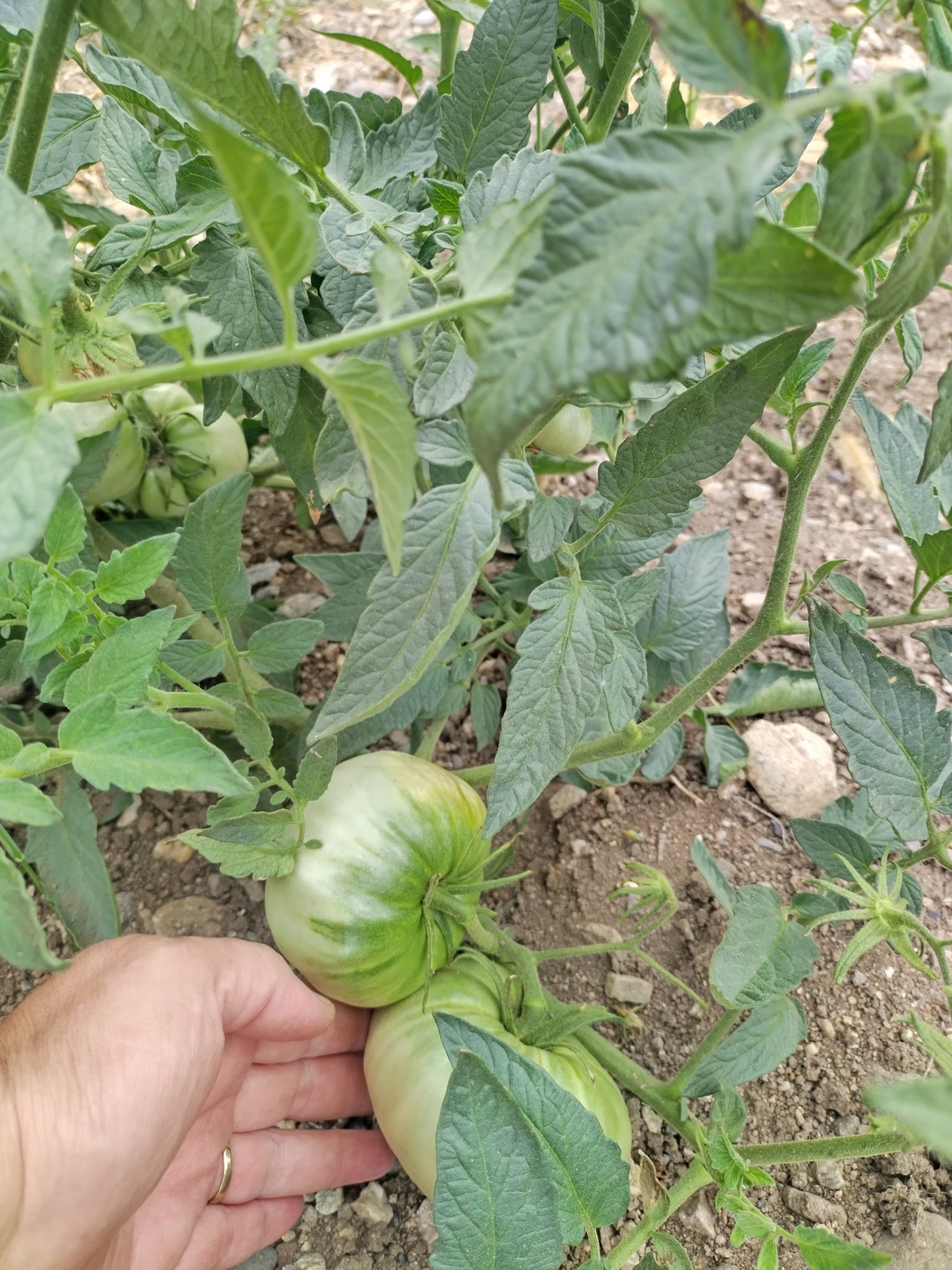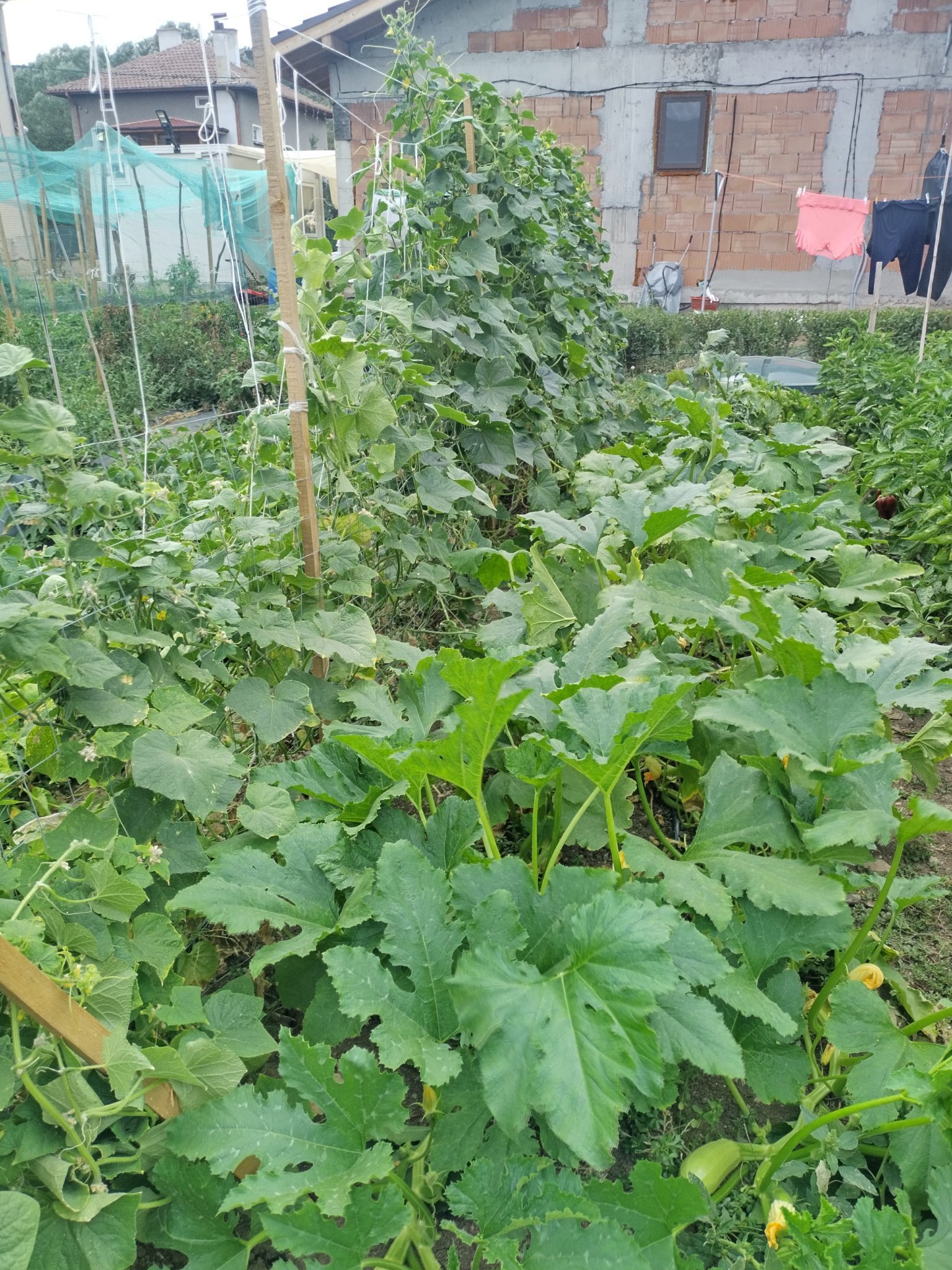 И аз днес бях на градината. Предните 4 дни забегнах по планина и басейн. Домати има много, пипер също, вече и червен, утре ще правя лютеница във фурната, а половинката си приготвя люти чушки, печени и овкусени в бурканчета, там не се бъркам, люто не ям. Тази вечер затворих белени домати, в момента изварям. Все още има и краставици. Въобще, може тази години доматите да са  ми по-късно, но засега има, има и още много зелени и цвят. Доволна съм. И с капково е супер.