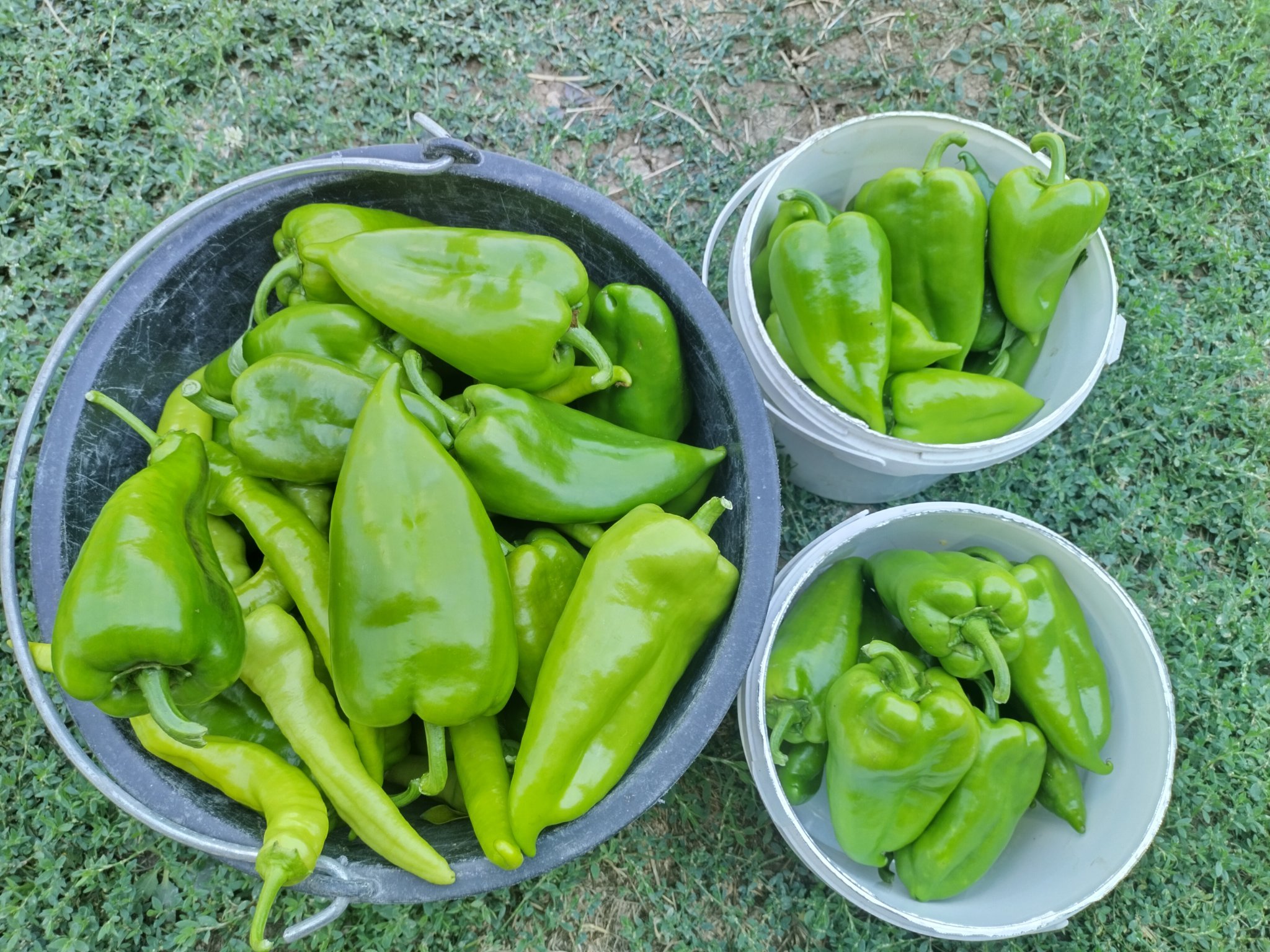 И при мен консервна фабрика. Миналата седмица преди морето прибрах най-едрите чушки, макар и зелени, за да се освободят корените и да успеят да наедреят и другите.