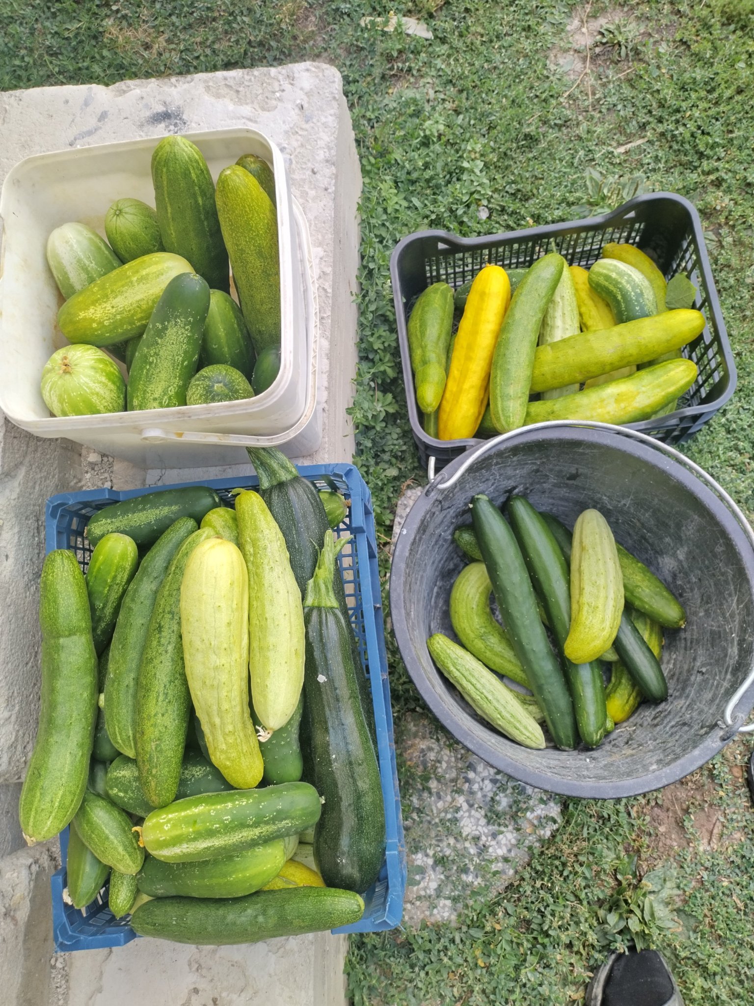 А това го набрах като влязох в градината след ваканцията. Пуках и затворих няколко буркана с рибки, както и направих 2-3 с песто, старите корнишони отидоха на туршия със ферментация. Цялата седмица се храним само от наше производство - зелен боб, тиквички, патладжани пълнени правих, доволна съм.