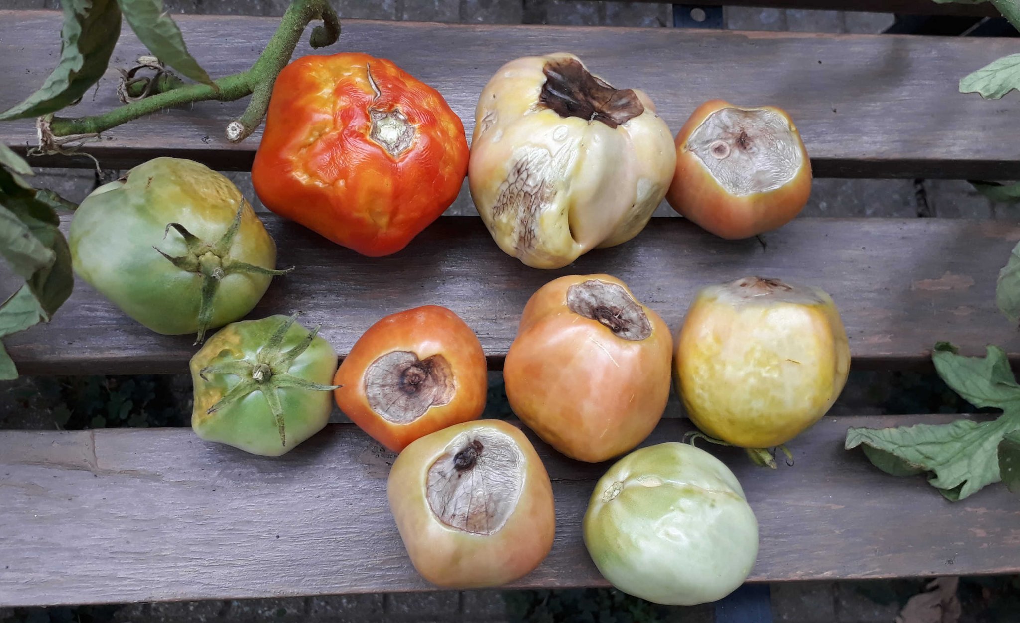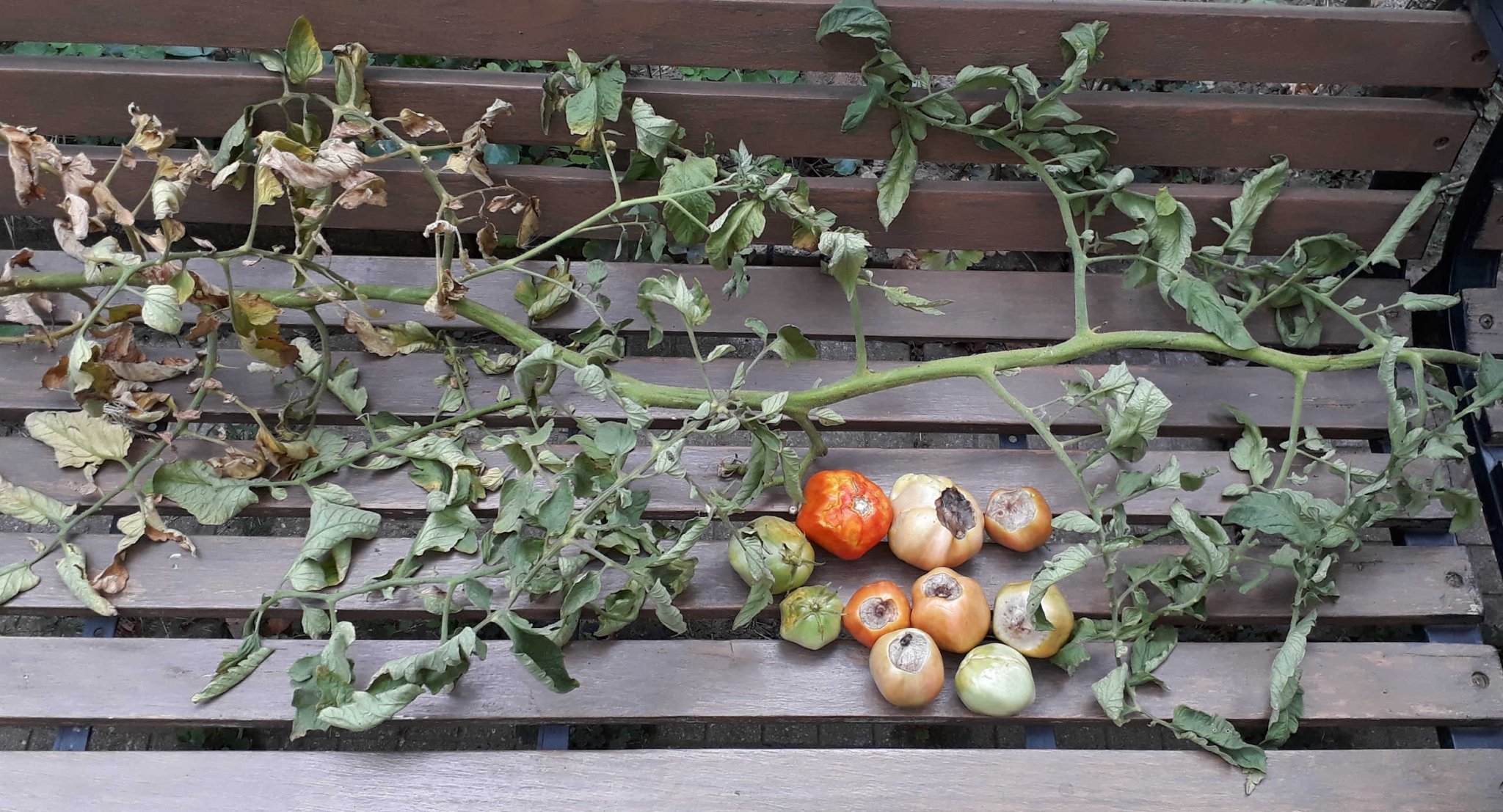Искам да покажа един овирусен домат, който няма следи от чернилка, голямо и високо растение с дебело стъбло, но всичките му домати са брак. При този сорт от 6 остана 1, но вероятно и неговите домати ще са подобни, въпреки че докато са малки изглеждат нормално. Има и при другите сортове такива доматчета, но в по-малък процент. Това с преживяемостта на сортовете и дефектите по доматите им ми се повтаря за втора година, ев. в края на сезона ще пиша какво показва моята статистика за сортовете, които отглеждам.