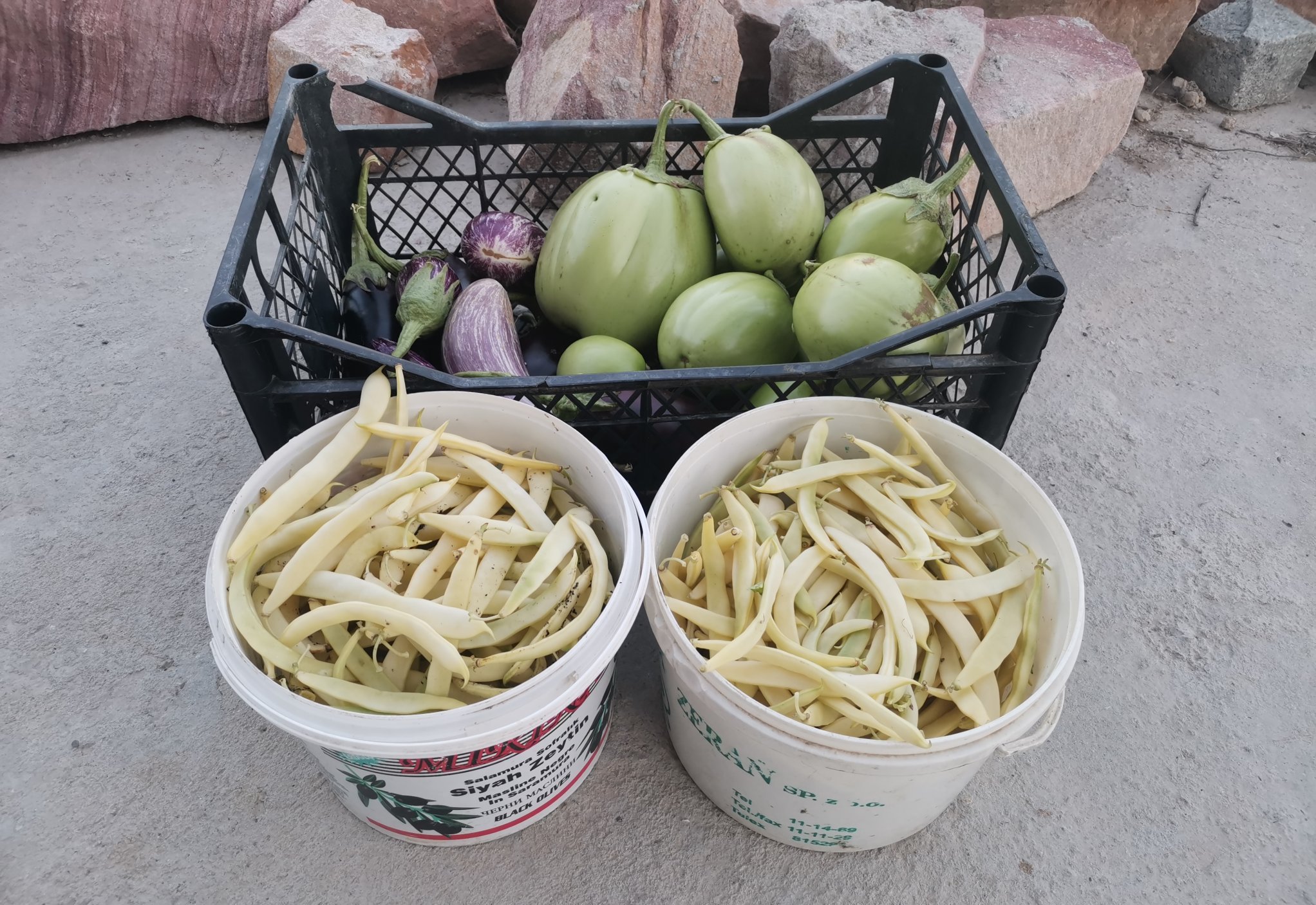 Набрах и зелен боб 3 кг и Патладжани половин касета, за гювеч. После ще извадя моркови и ще набера пипер.