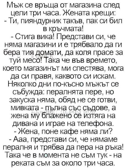 - Е, пробвах, не е да не съм...тогава дайте ми три кюфтета, една пърленка и една бира.