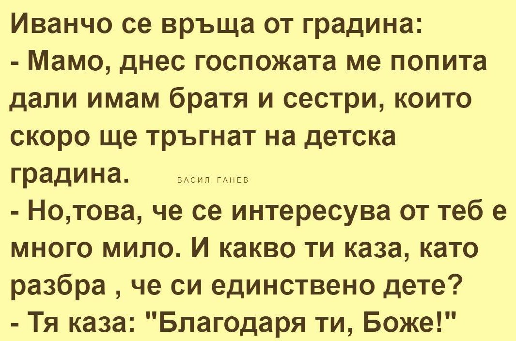 20. Детска мъдрост: ако мама се смее на шегите на татко, значи вкъщи има гости.