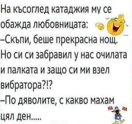 - Е тогава, що не ми викаш любовчия, ами пияница?