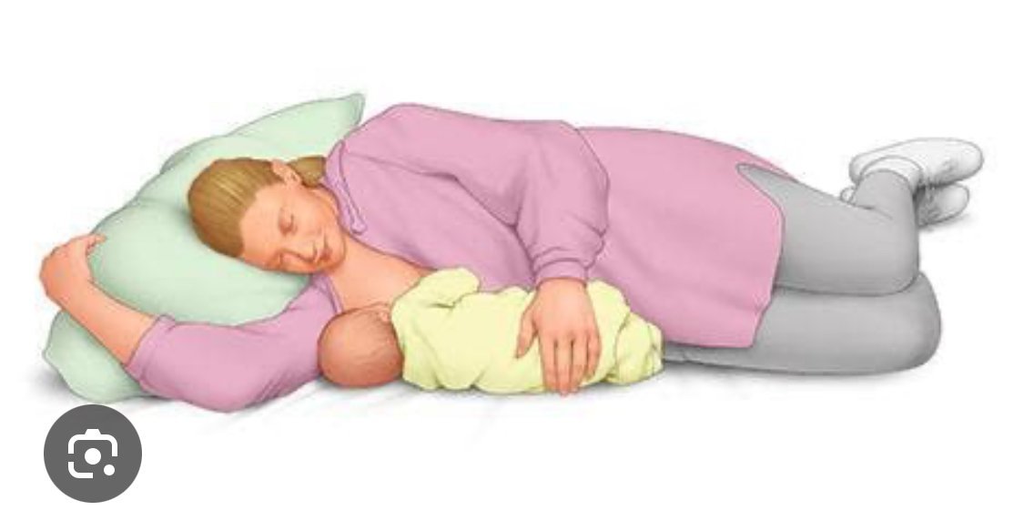 Лягаш на една страна, възглавница под главата ти и пъхаш и ръката си под възглавницата, слагаш бебето до теб и нагласяш като държиш гърдата с другата си ръка.