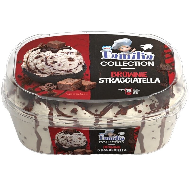 Не знам какво има в състава на този сладолед, ама не се топи. Донесоха ми го подарък, сложих го върху брауни и не мръдна. Остана си цяло-целеничко поне час, докато не го махнах в коша. Май няма да купувам нищо в кутия от тоя производител