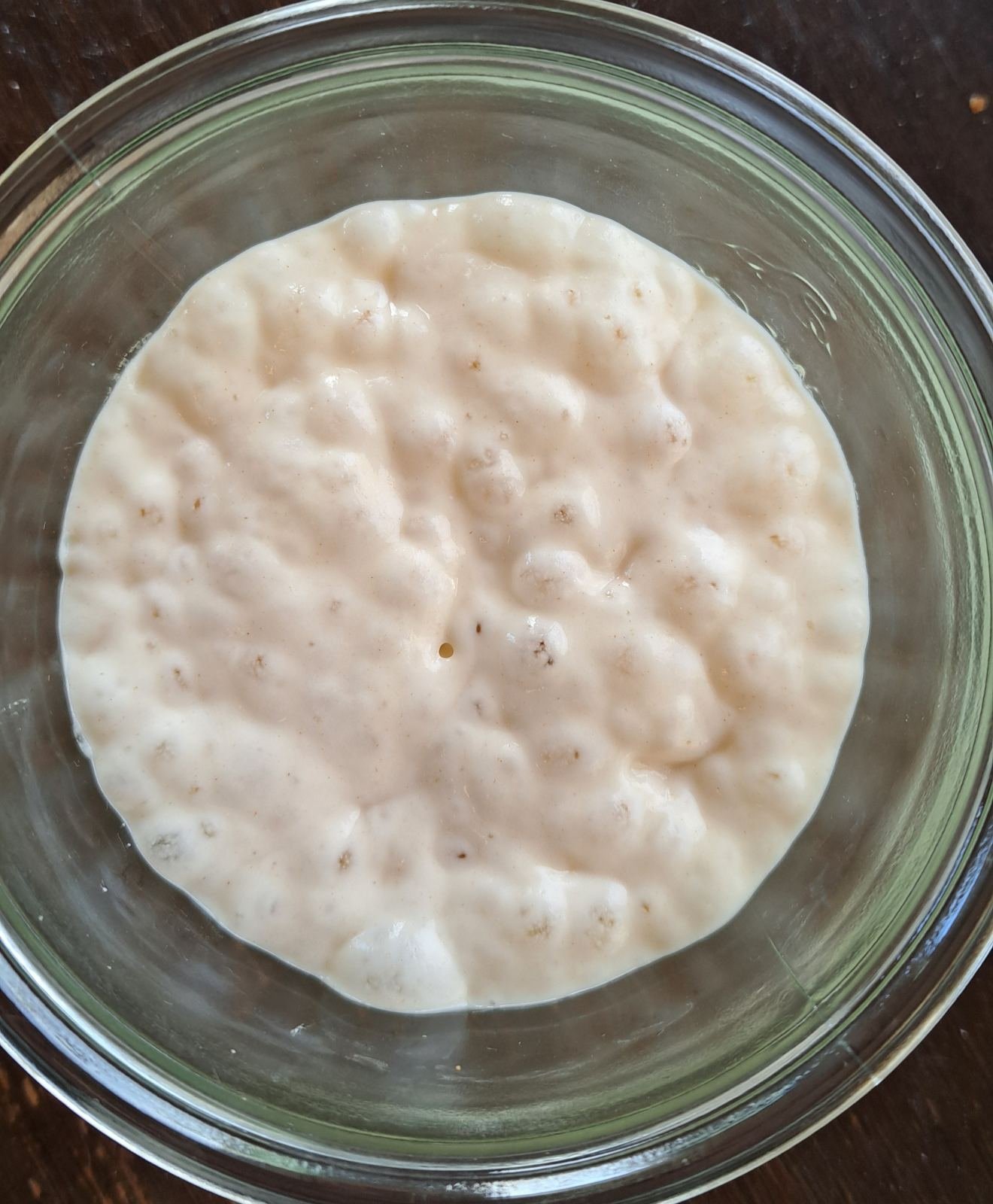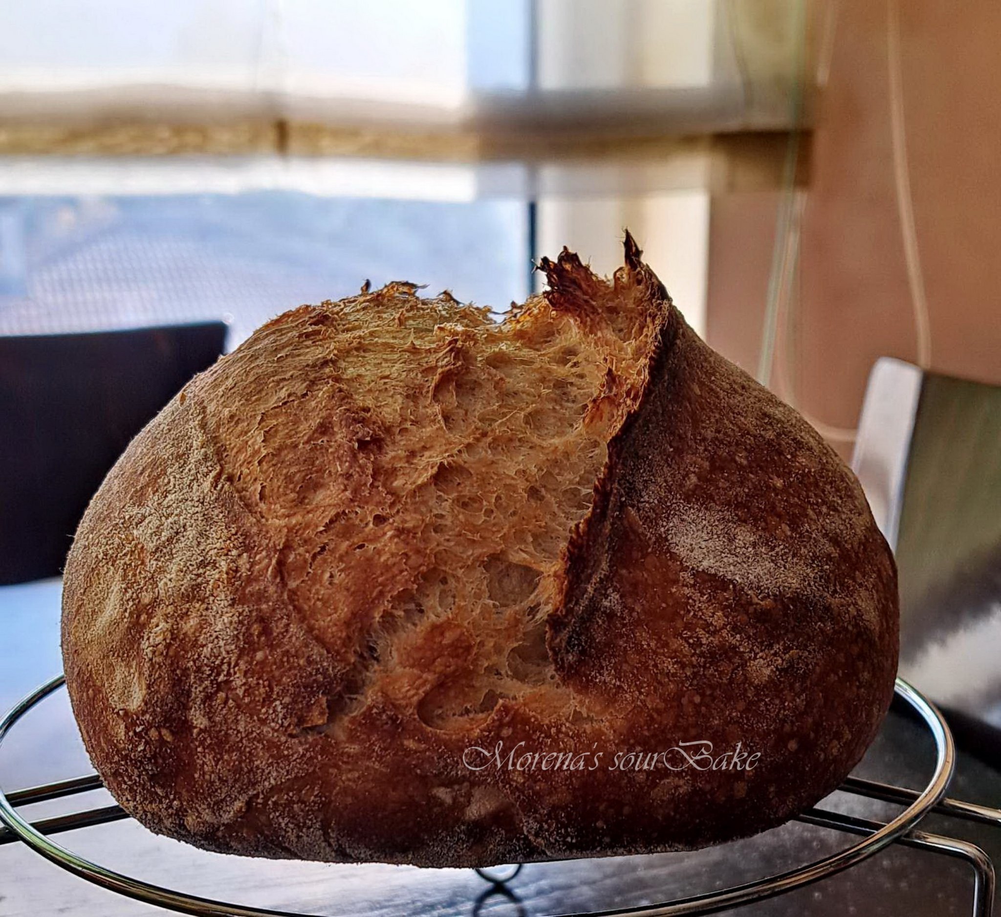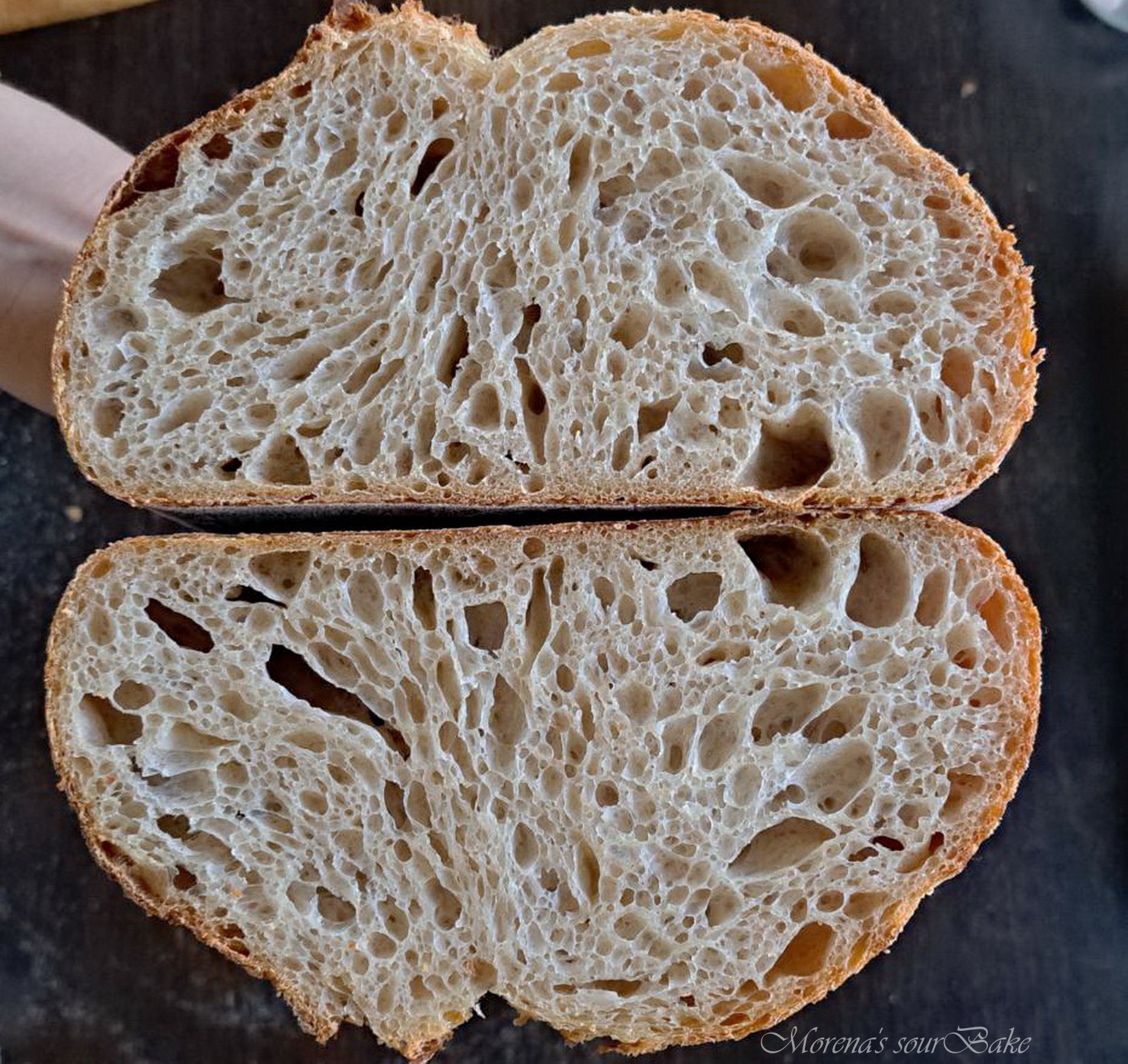 Автолиза 1час.  Вътрешни сгъвания 4 през 45мин. и оставих да довтасва в покой.