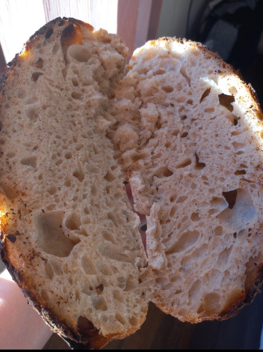 Оформих след 7.30 часа насипна ферментация и прибрах в хладилника след още час,  за 14 часа студена ферментация.  Изпечен както обичайно директно от хладилника за 25/250 с капак и 15/220 без капак.