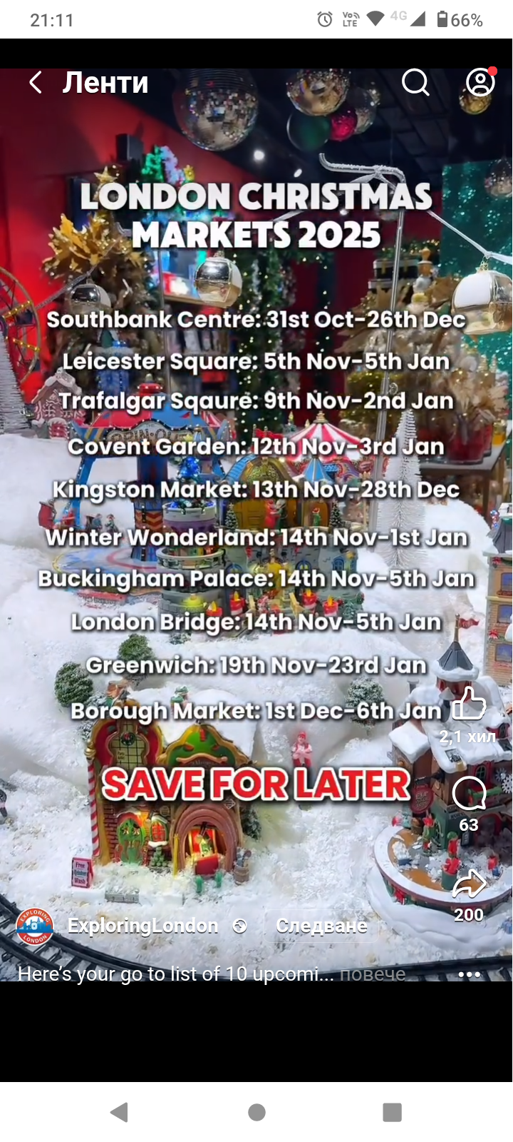 Скоро някой попита за коледни базари в Лондон. Преди малко ми попадна една лента във фейсбук с такива. Прилагам скрийншот от лентата в скрит текст