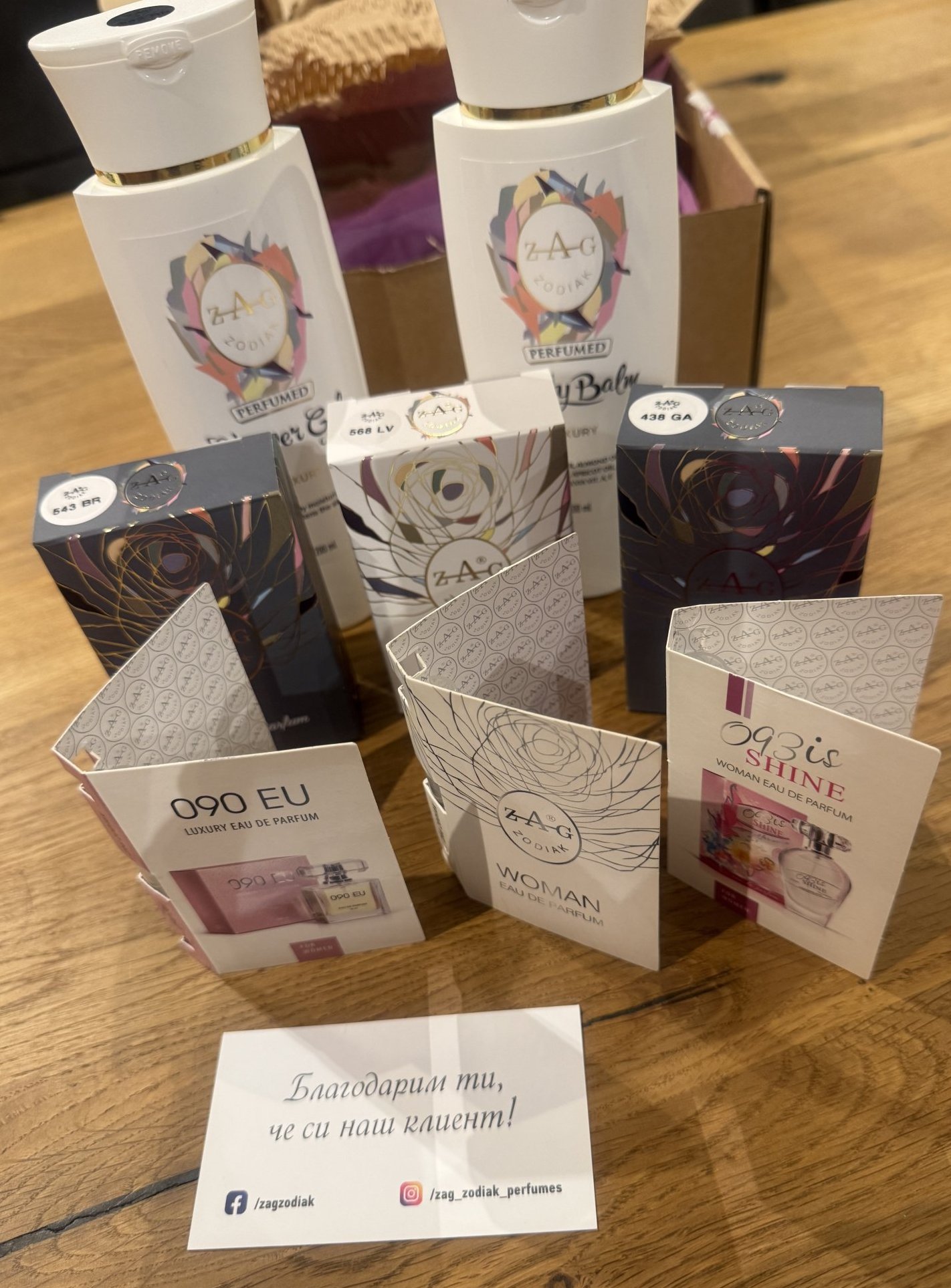 От предходна кампания във форума бях прочела за ZAG Zodiak и при избиране на парфюм преди няколко месеца се сетих за този бранд. Рискувах, поръчах и съм доволна. Поръчката мисля, че имаше 5 мостри подарък и също така впечатляващо опакована. Бях избрала ZAG Zodiak 330 BV /Bottega Veneta на Bottega Veneta/, ZAG Zodiak 238 AP /Acqua di Gio на Giorgio Armani/ и ZAG Zodiak 544 MW /My Way на Giorgio Armani/. Имах мостри и на трите бранда, затова можех да реша кои да поръчам. Доста сполучливи са по сходство ароматите на ZAG Zodiak. Ползвам ги почти всеки ден като е според настроението и си ги харесвам все още. Убедих се, че ZAG Zodiak е марка, която си заслужава похвалите и произвежда парфюми за всяко предпочитание.