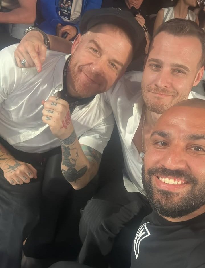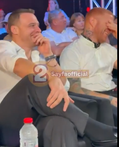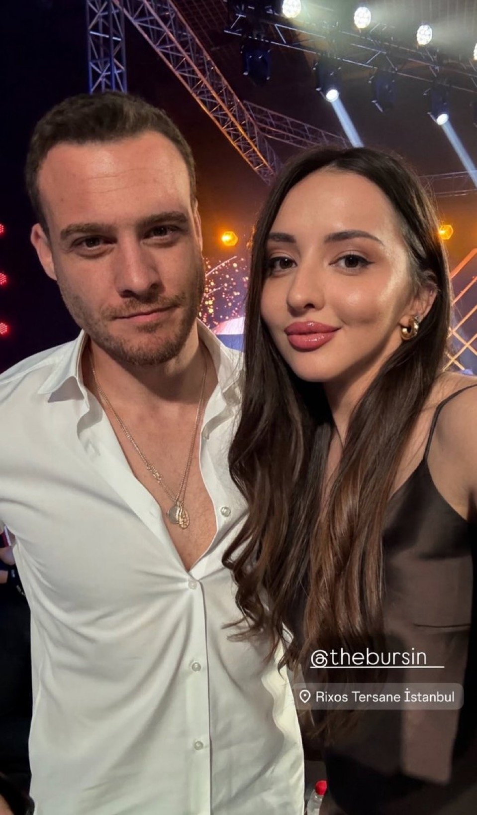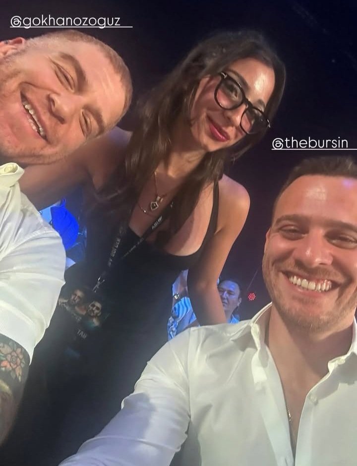 "Керем седи с приятеля си - певеца Гьокхан Йозогуз на боксовото събитие тази вечер"