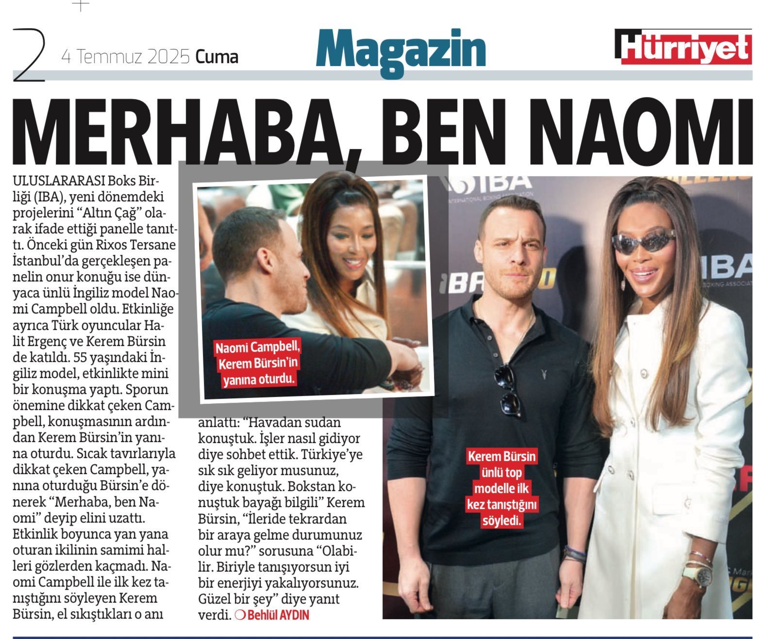 Международната боксова асоциация (IBA) представи своите проекти от новата ера на панел, озаглавен „Златна ера“. Почетен гост на панела, който се проведе вчера в Rixos Tersane Istanbul, беше световноизвестният британски модел Наоми Кембъл. Турските актьори Халит Ергенч и Керем Бюрсин също взеха участие в събитието.