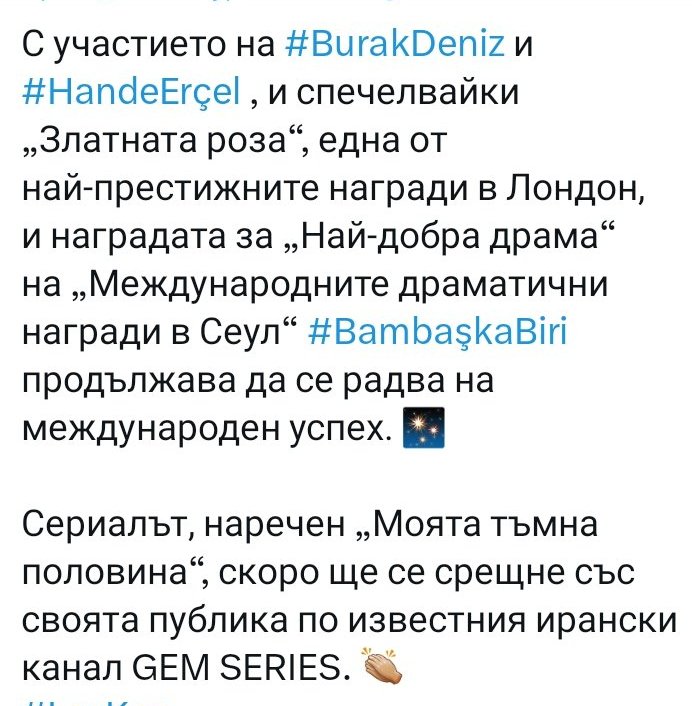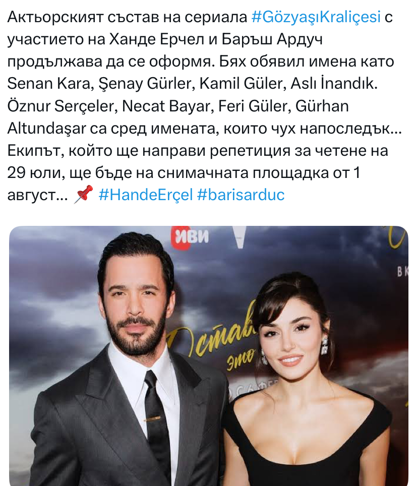 От Туитър - Ерчелки се организират да пишат на Ханде и на Дамла, да се откаже от проекта и с Баръш. В най-добрия случай да го сменят. Не искат трети проект с него, само щял да я дръпне надолу.