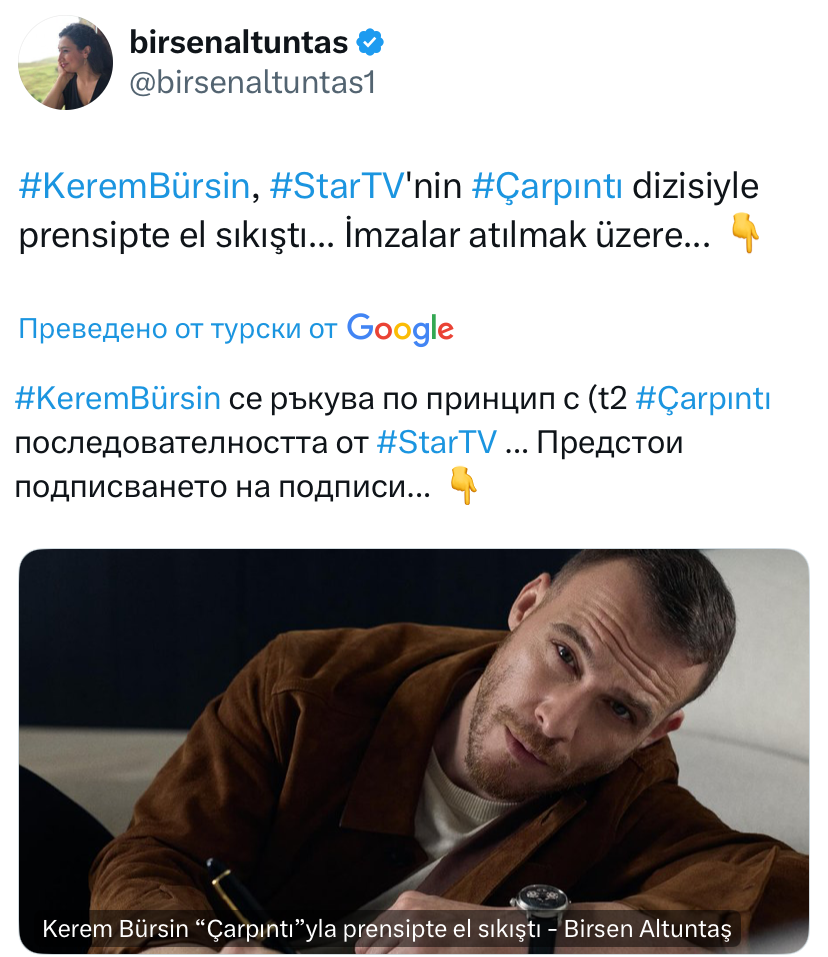 Новият проект на Керем Бюрсин беше любопитен. Разбра се, че красивият актьор се е ръкувал с новия сериал на OGM Pictures "Çarpıntı", който ще се излъчва по Star TV. Бюрсин, чието име беше представено в сериала на Disney Plus "Aşk", е предпочел "Çarpıntı" и е стигнал до етап на договор с проекта.