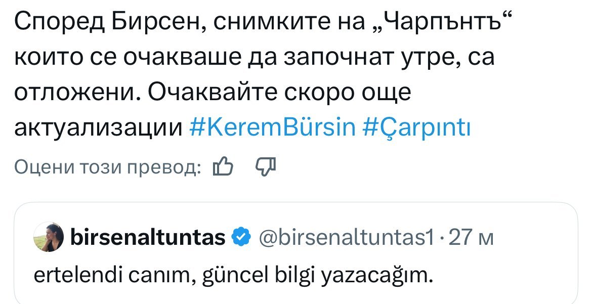 Той Керем от вчера е в Истанбул, питали са Ярен и тя е потвърдила.
