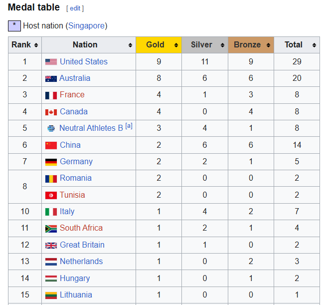 А ето и крайното класиране по медали от цялото световно първенство по водни спортове.