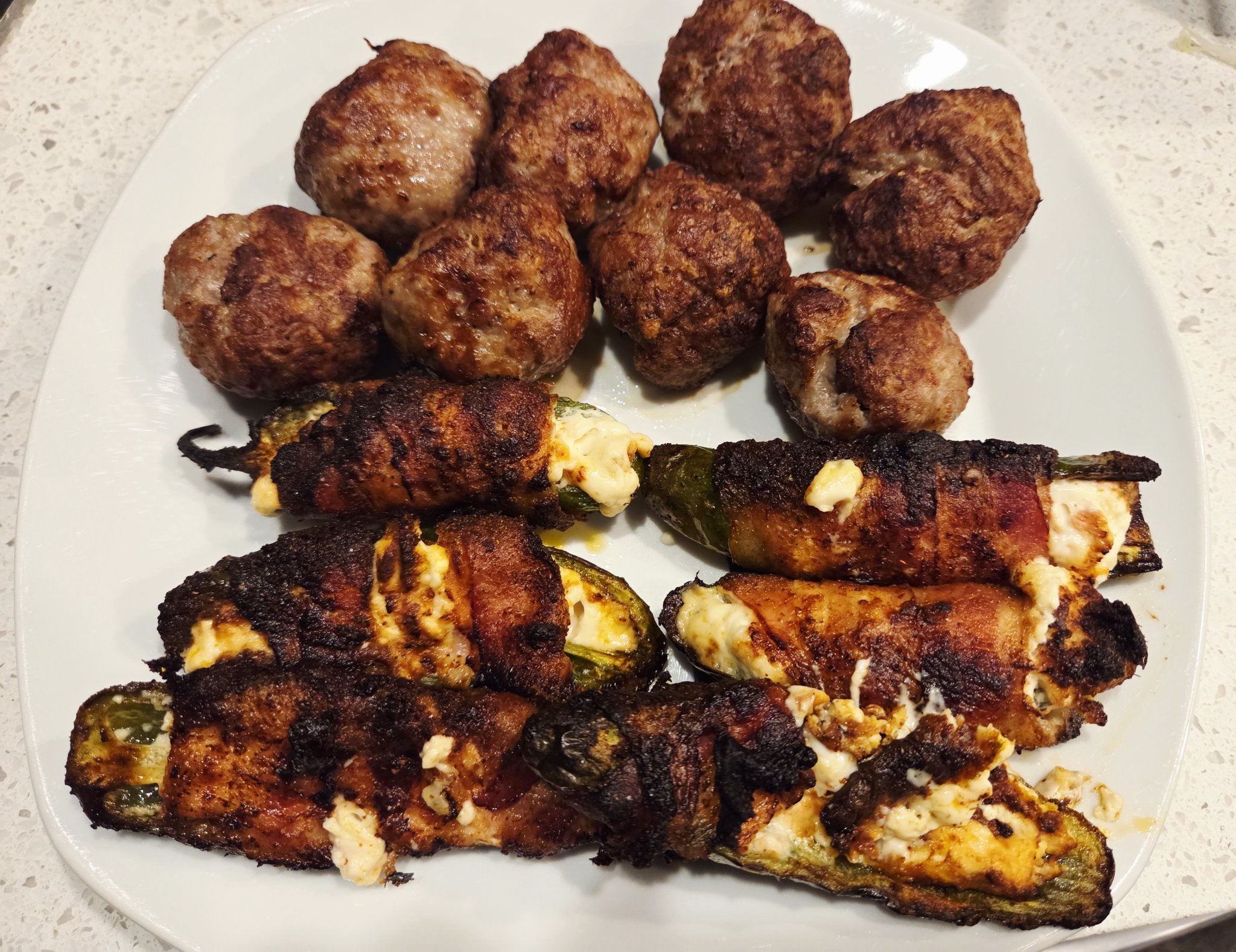 Кюфтета и пълнени с крема сирене люти чушчици увити в бекон на АФ