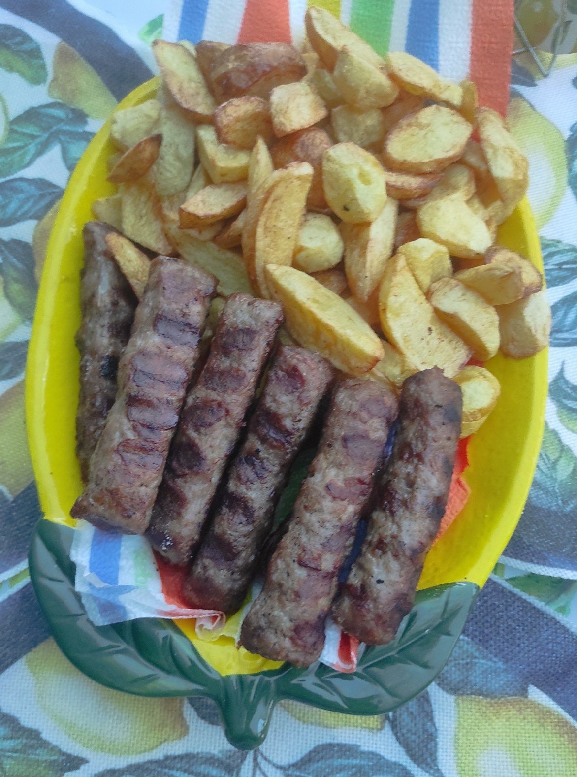 Пържени картофи и кебапчета, които бяха много вкусни.