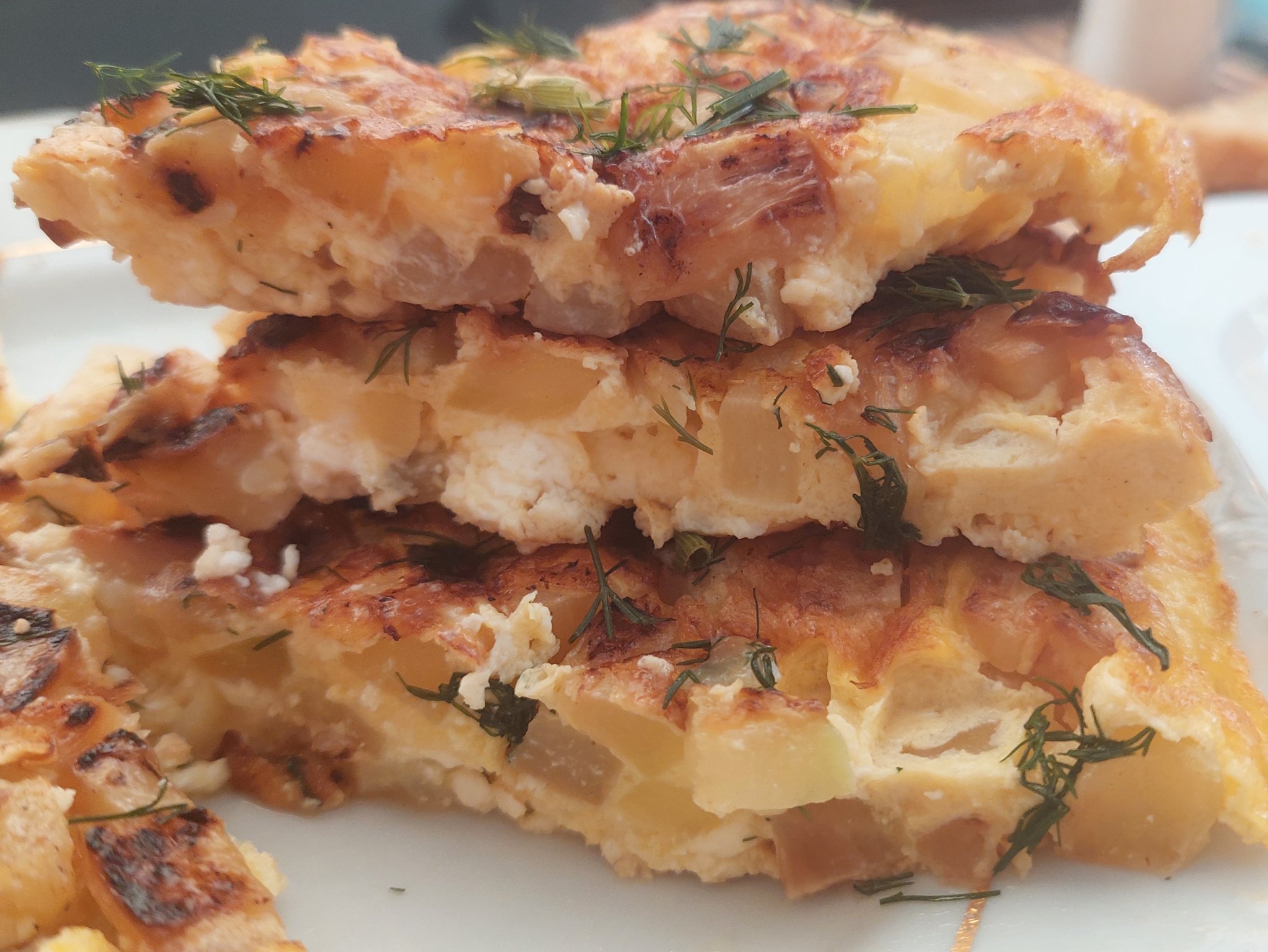 Ние напоследък само на аламинути я караме. От снощи един бърз, дебеличък омлет с тиквички и сирене.