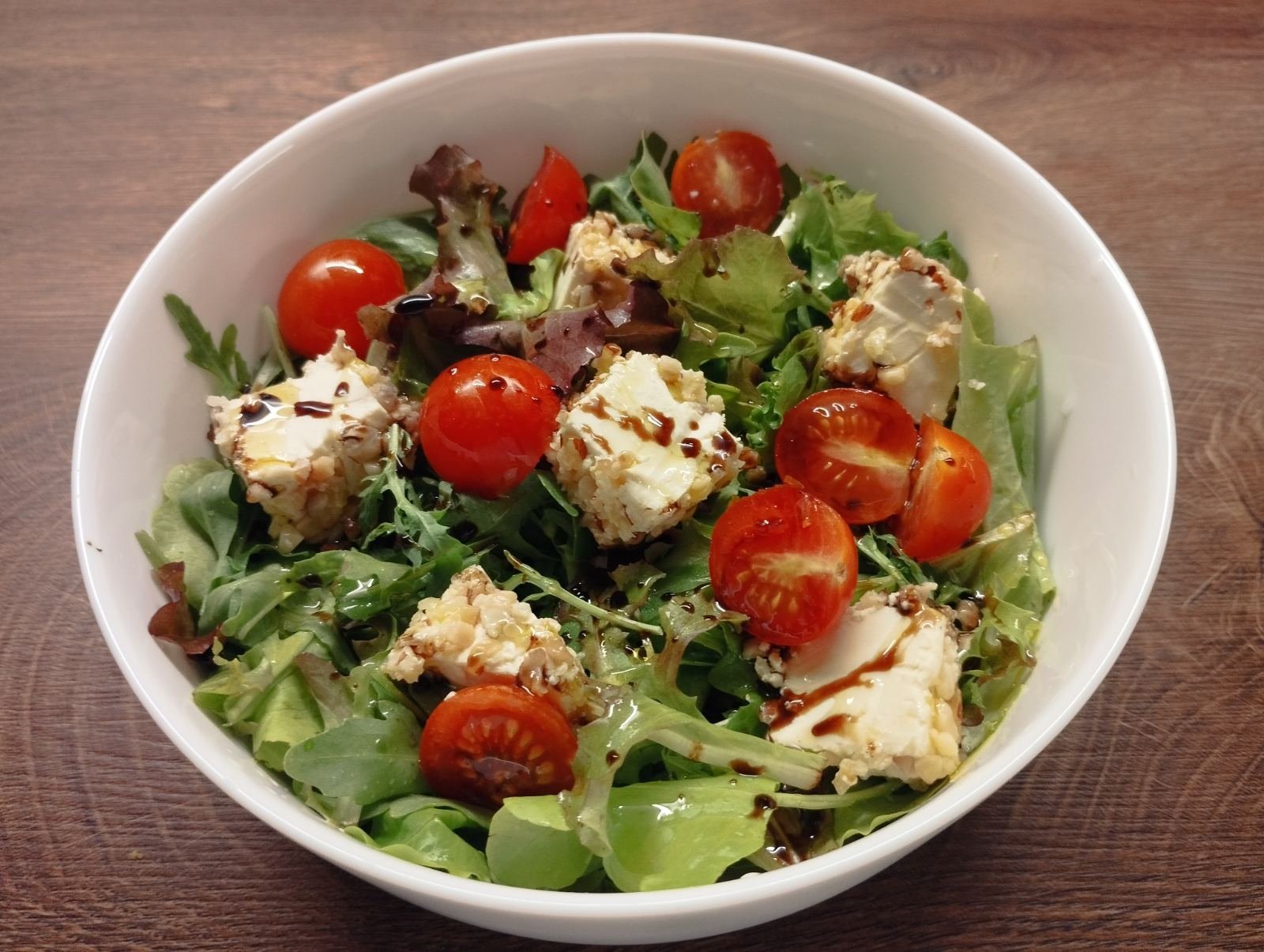 Лоша снимка на вкусен свински дроб на фурна със салата