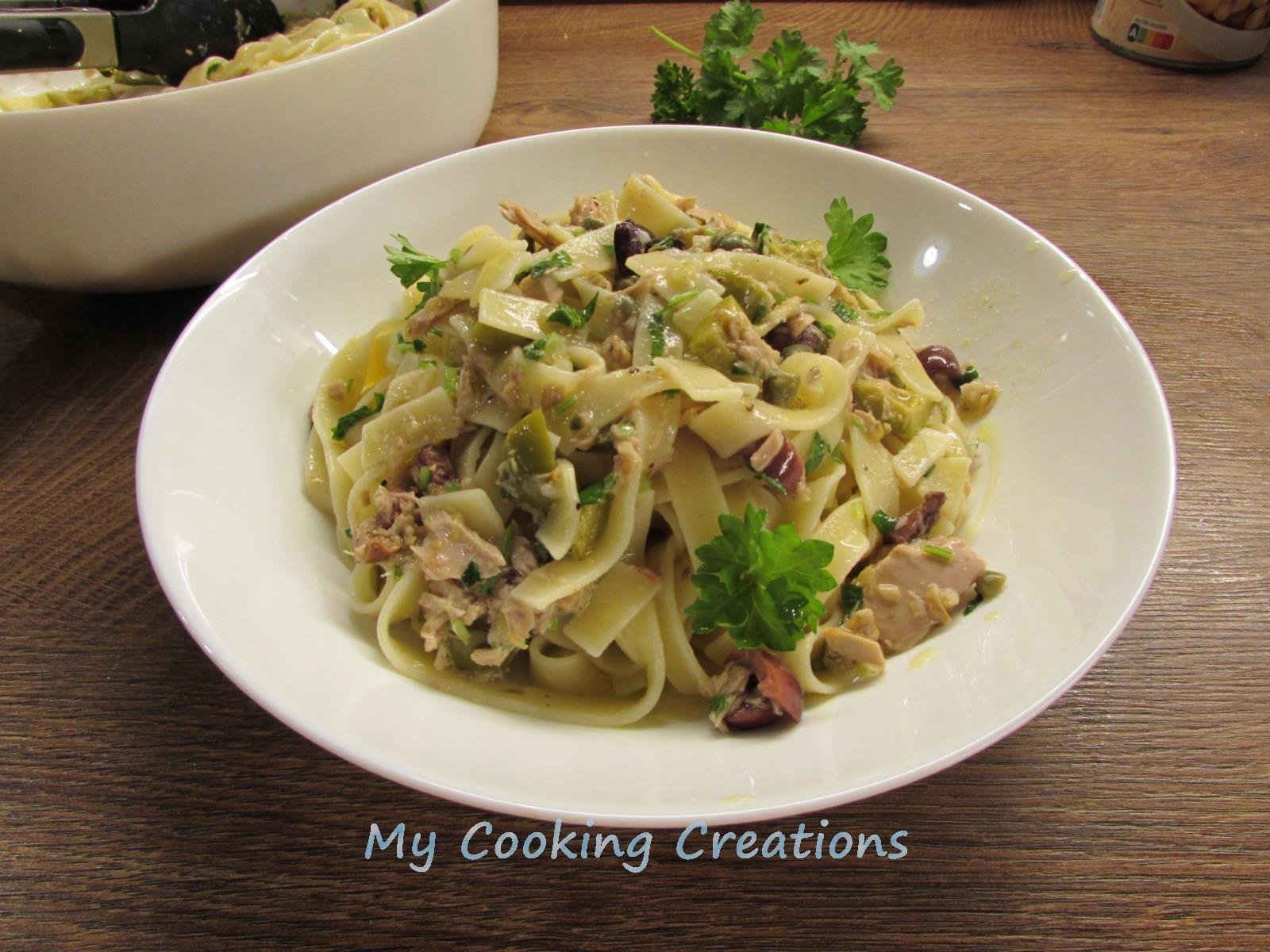 Талиатели по сицилиански със студен сос от риба тон и маслини