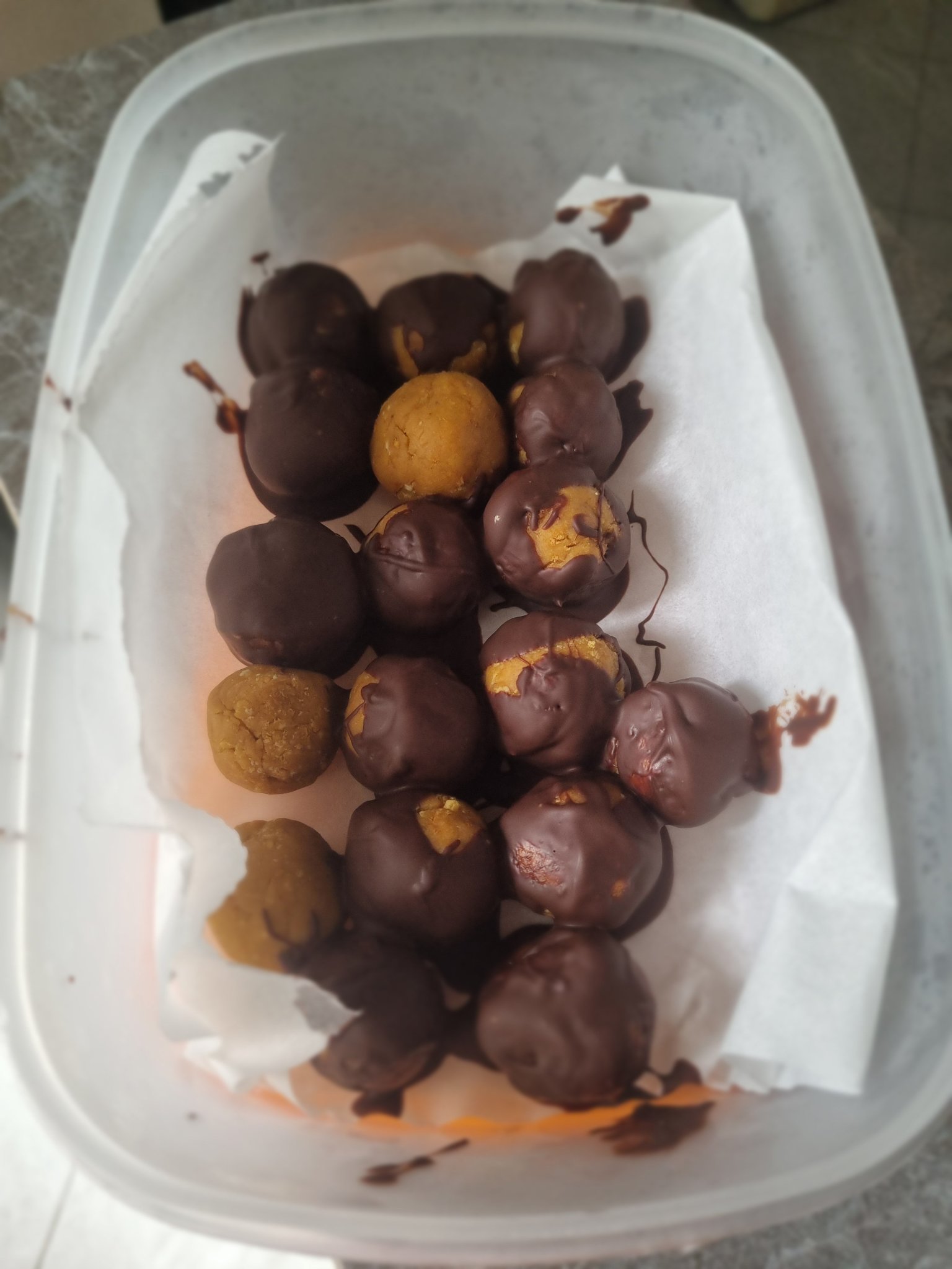 От вчера прясно зеле, добавих си сандвичи, и бонбони от бисквитки и банан , с малко черен шоколад.