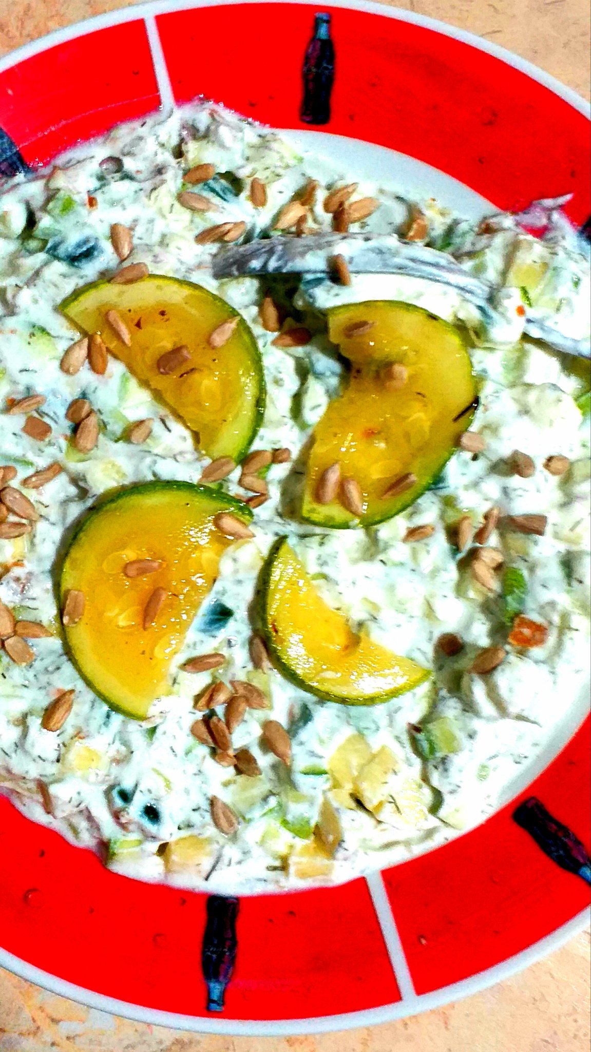 А сега направих млечна салата с тиквички, наричам я Пепеляшка:)