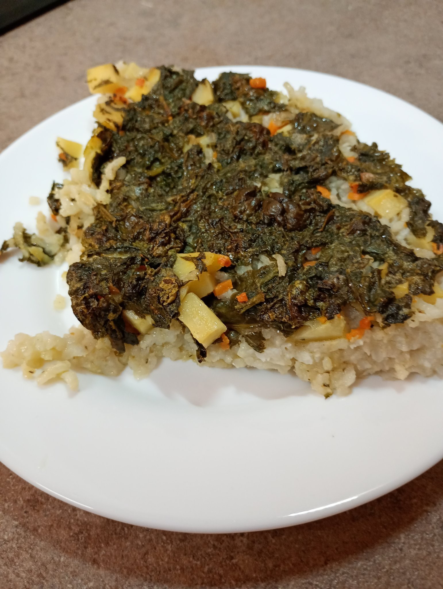 Ориз със спанак, морков, лук и две картофчета нарязани на кубчета за пръв път правя хареса ми