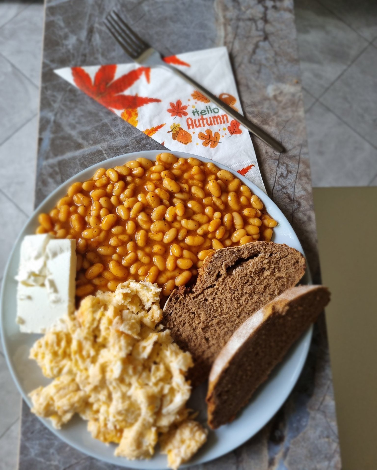 Бърз обяд боб консерва, яйца и ръжен хляб,а за момчетата спагети болонезе. Хубав уикенд Heart