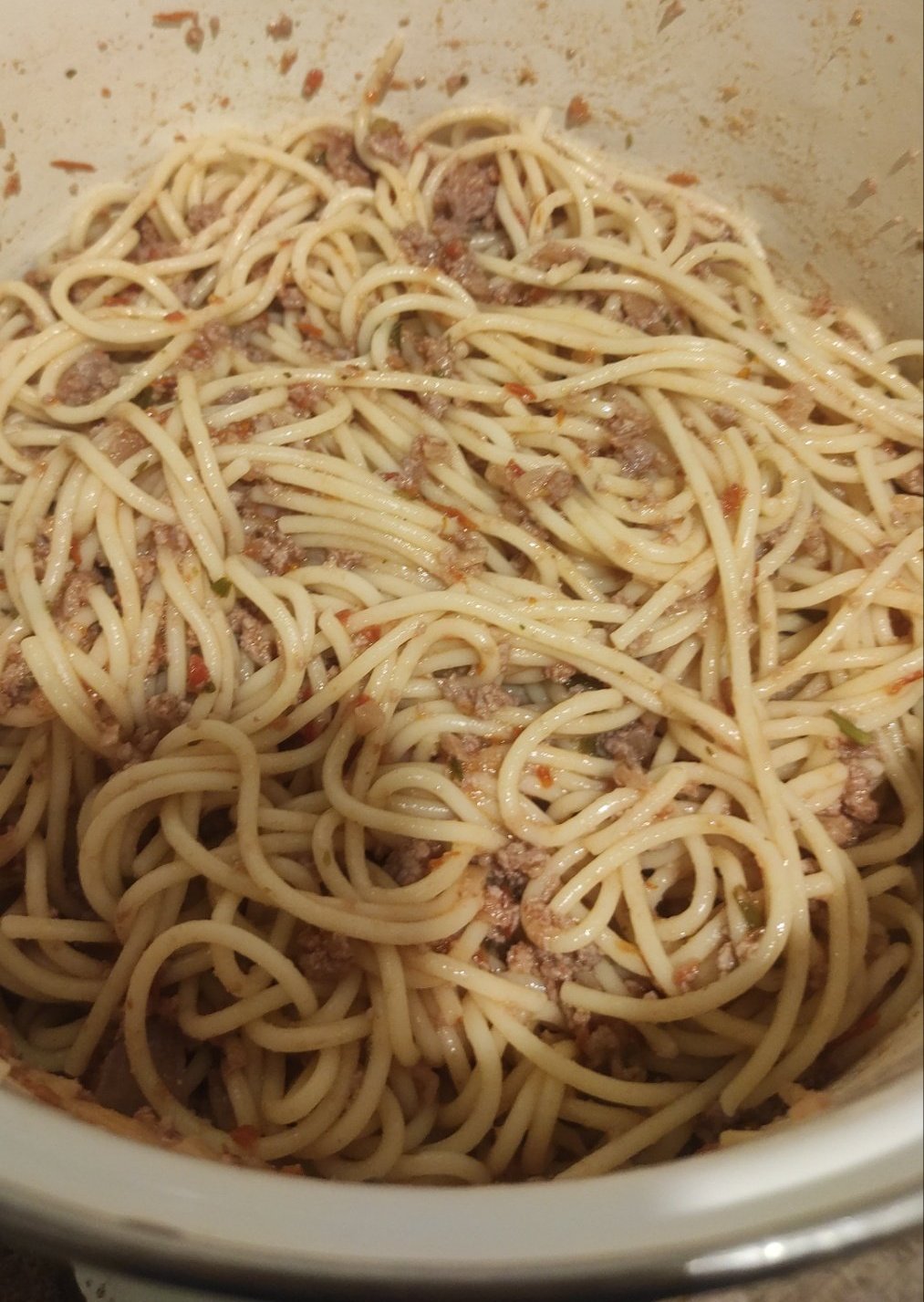 Спагети болонезе. Нямах време за други снимки и затова така от тенджерата.