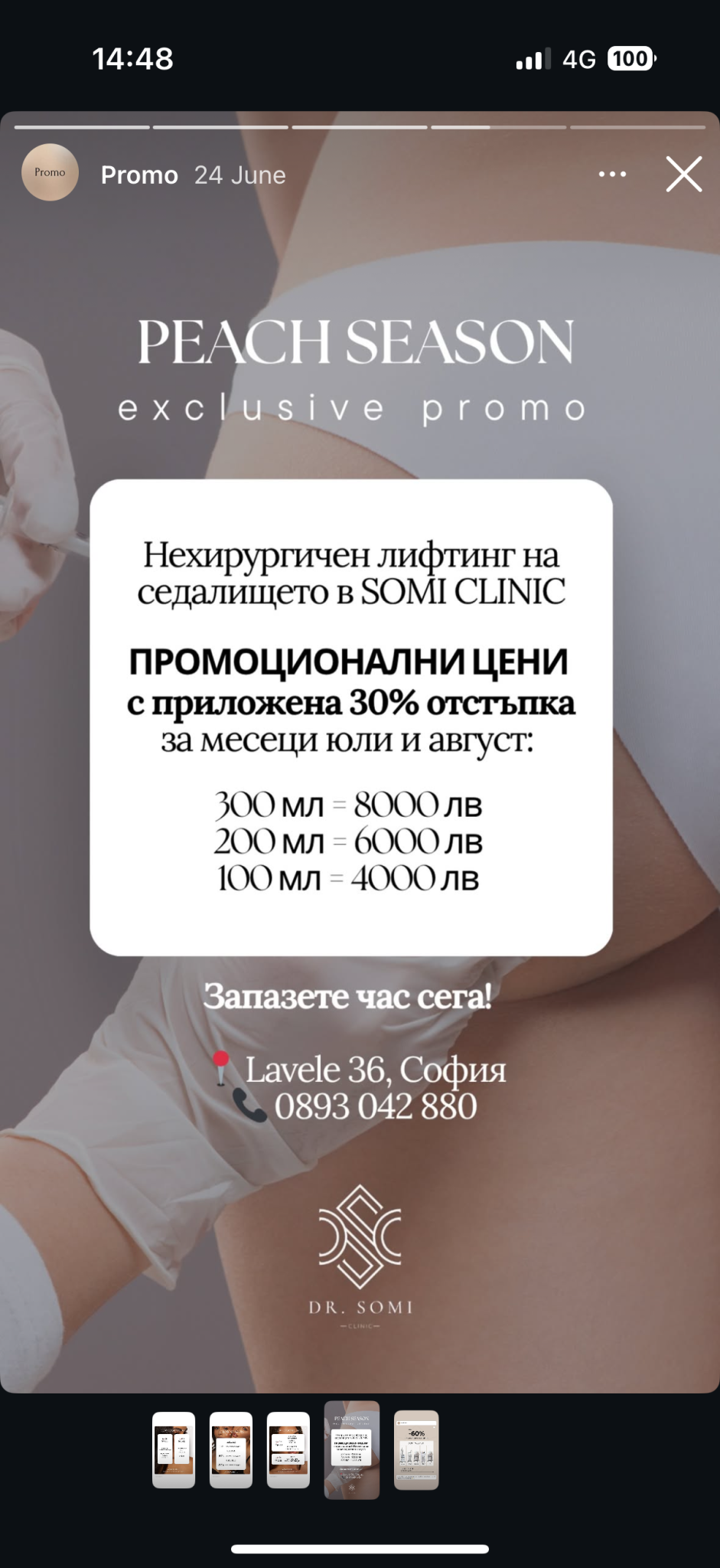 Солено излиза, в клиниката на Соми съм срещала обявена цена :