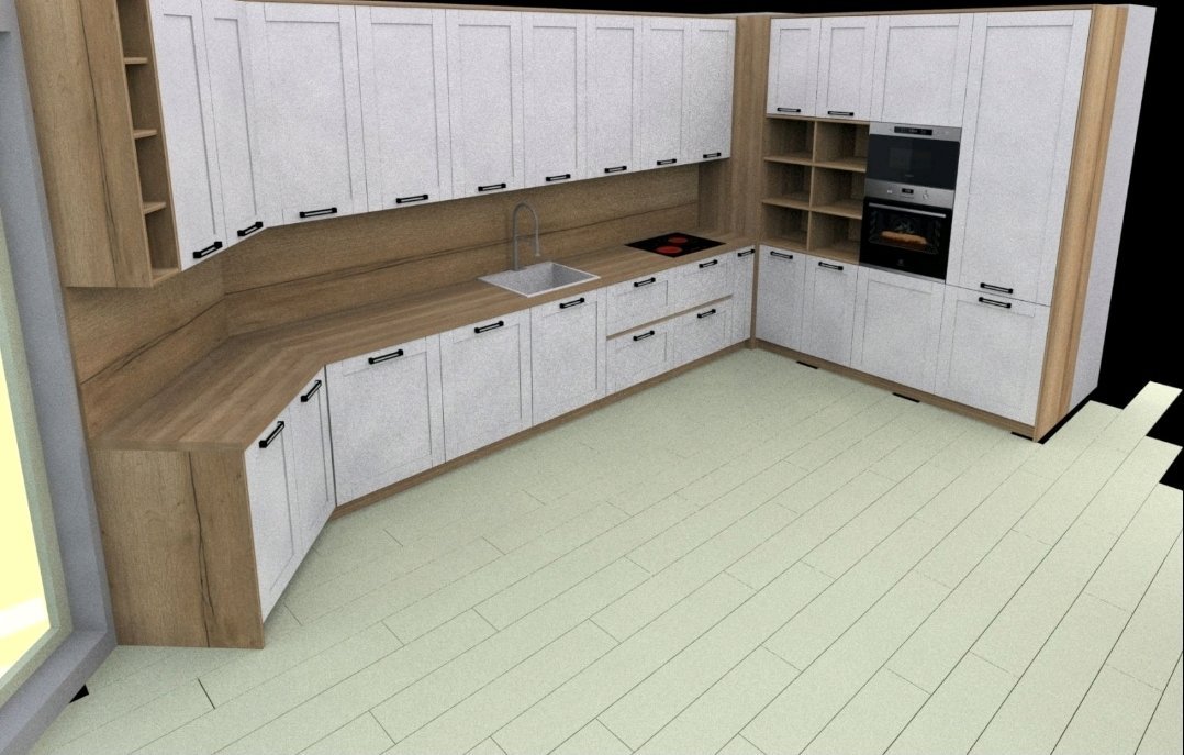 По принцип, като правехме кухня, аз си направих проекта къде какво точно искам, а на мебелиста оставих да измисли как да стане(имах проблем с ъгловите шкафове) и да изчисли вече с точност размери за изработка.. Единствено от него приех идеята  два шкафа да заменя рафтове със шкафове.