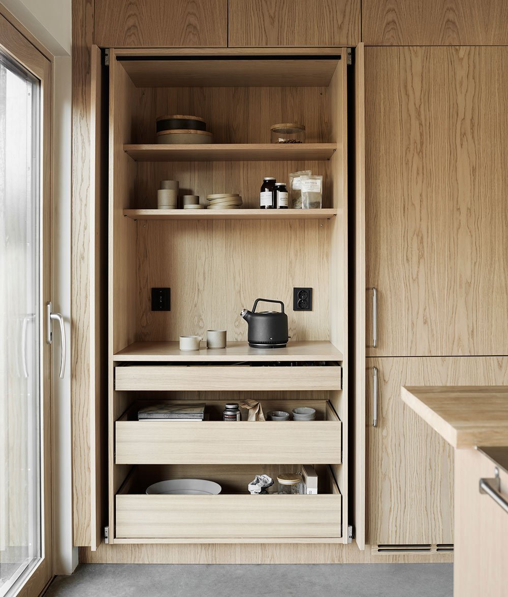 шкаф със скрити уреди: може да е с кафе машина и тостер, може пекарна и фраер и т.н.