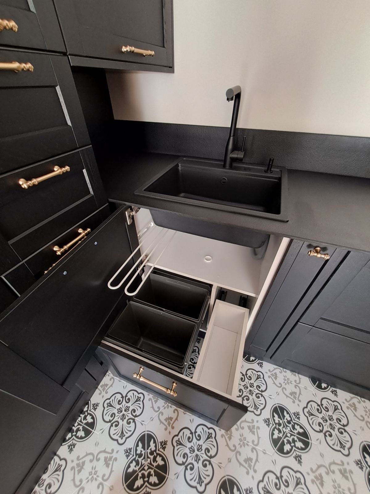 За чекмеджета под мивката и кош - първо е много по-удобно. Може да съберете по-големи кофи. Има в Икеа системи от кошове, има в Роси също и по-скъпи на Бланко, Блум и т.н. За всеки според бюджета. Ако не искате да цапате челото на чекмеджето - има електрическа система за отваряне (с колянце). При Блум се казва Servo drive. Вече има и в Икеа като по-бюджетно решение.