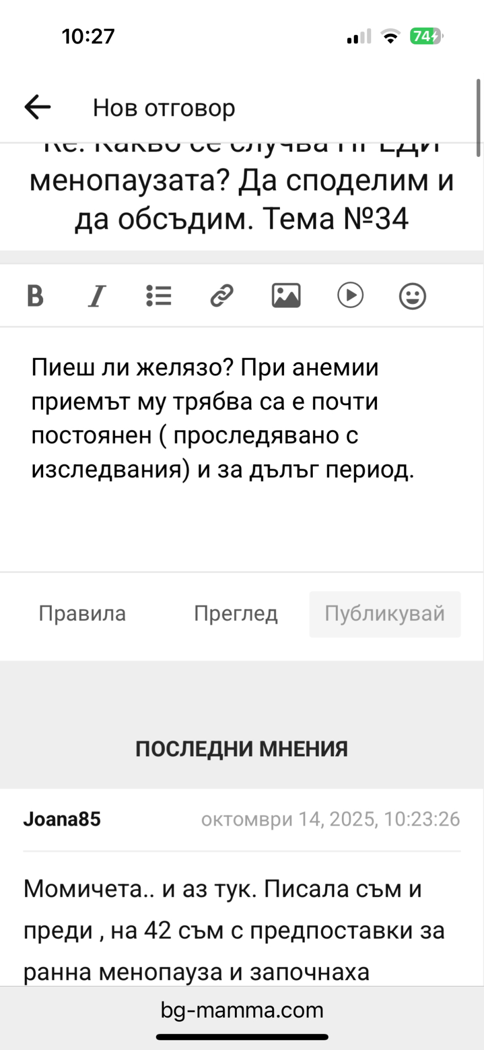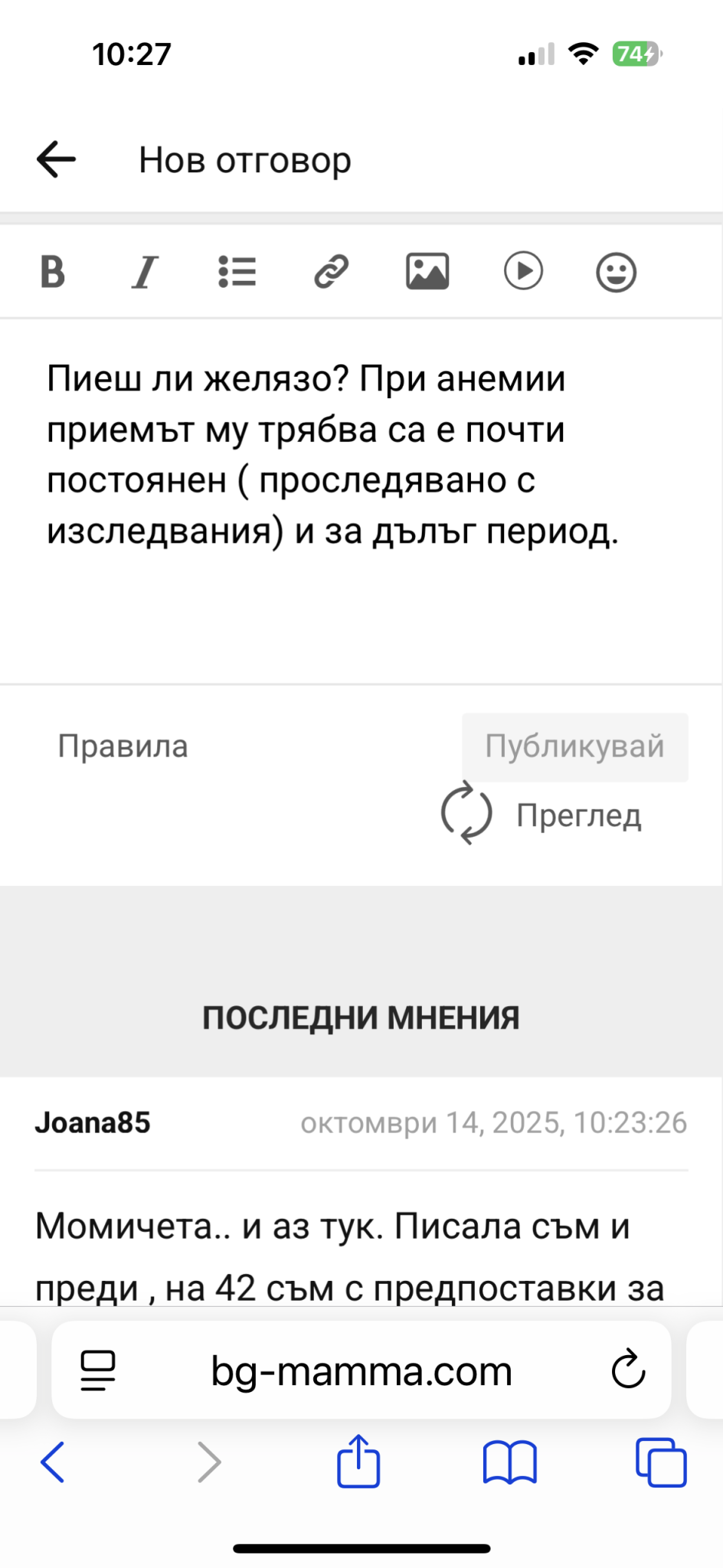 пиша текст, редактирам в крачка, преди публикация,  и бутон “публикувай” става неактивен.
