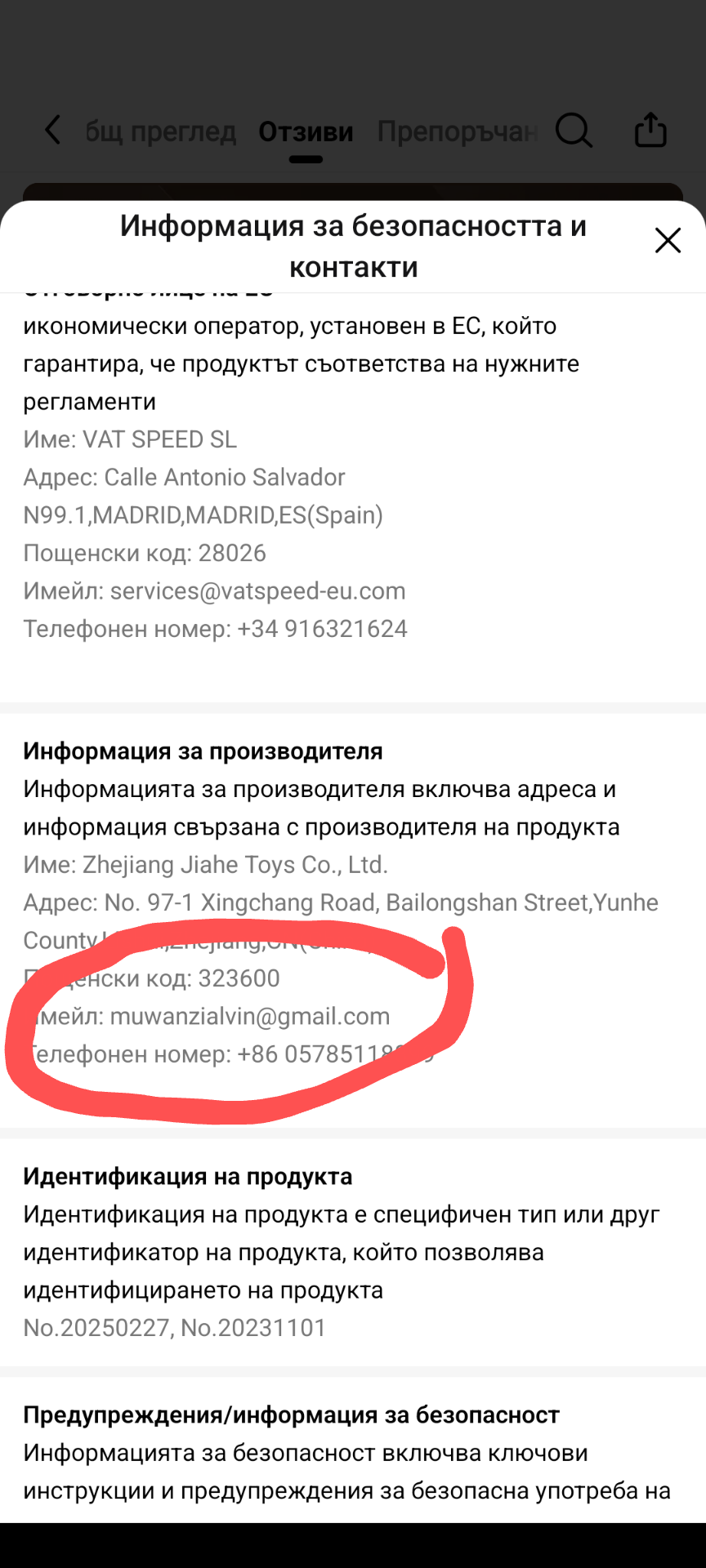 Редактирам: имейла търсим в информация за производителя