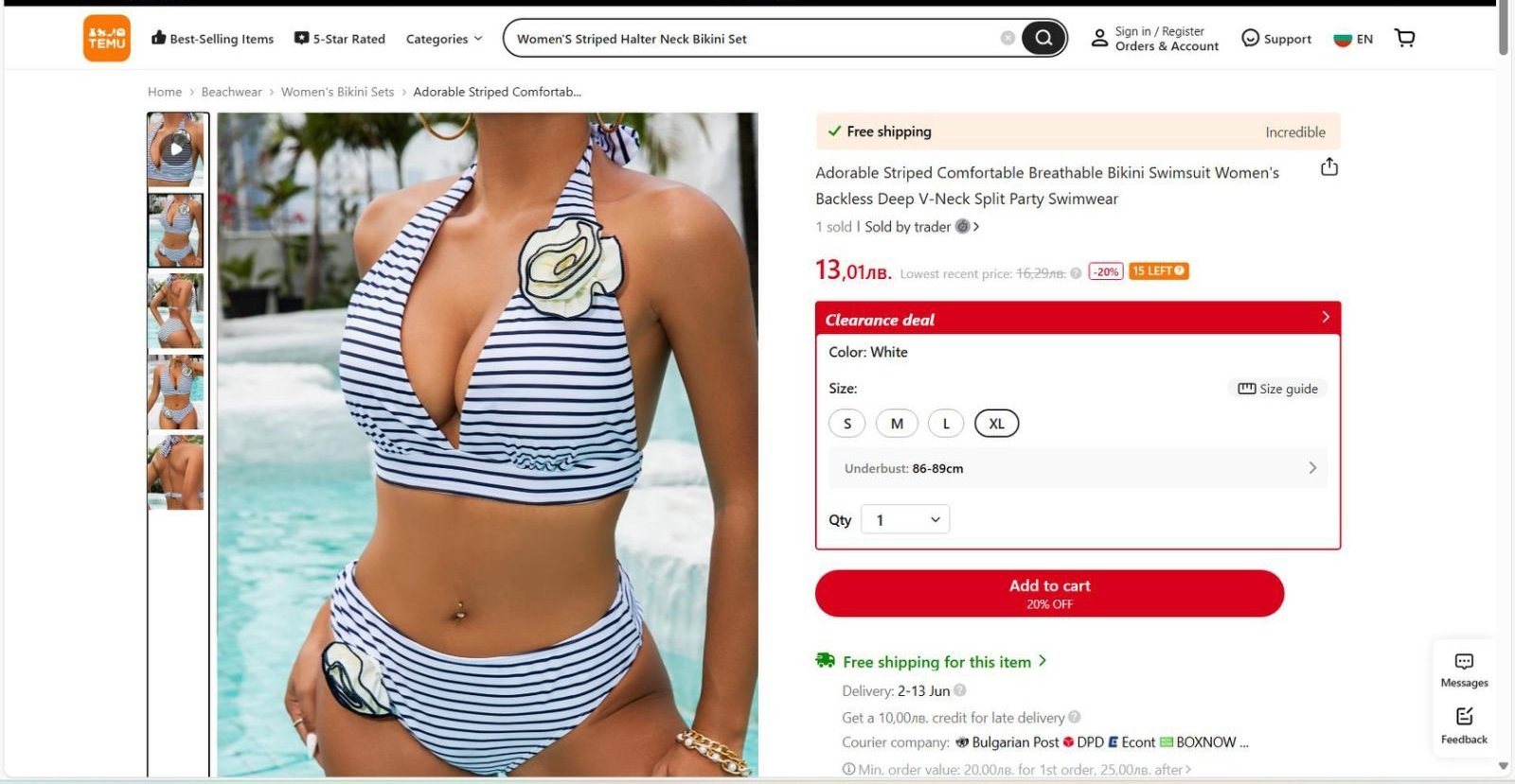 Да похваля този бански. Отговаря на размера. Материалът е добър и плътен. Закопчалката метална. Подплатата плътна. Не прозира. Мислех да махна безумните платени розички, но взеха че ми харесаха. Не съм поръчвала бански от Тему. Беше ми за пръв път. Исках нещо набързо и без да обикалям и меря.