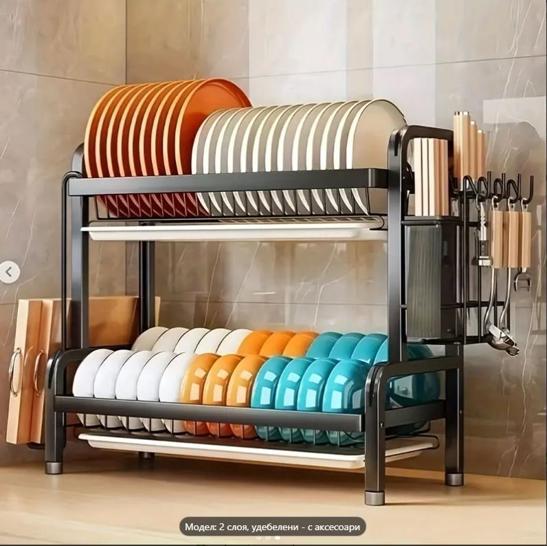 Аз преди месеци върнах един подобен сушилник за съдове. Много малко разстояние между пръчките само тънка чиния влиза. Не ми хареса въобще и замина обратно. Тази сутрин ми върна и офертата за намаление с карта на един продукт.
