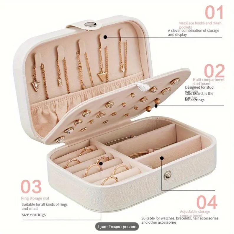 Кутийка за бижута за път. Хубава е, не е нещо особено, но ще върши работа и могат да се сложат и малко по-обемни бижута.