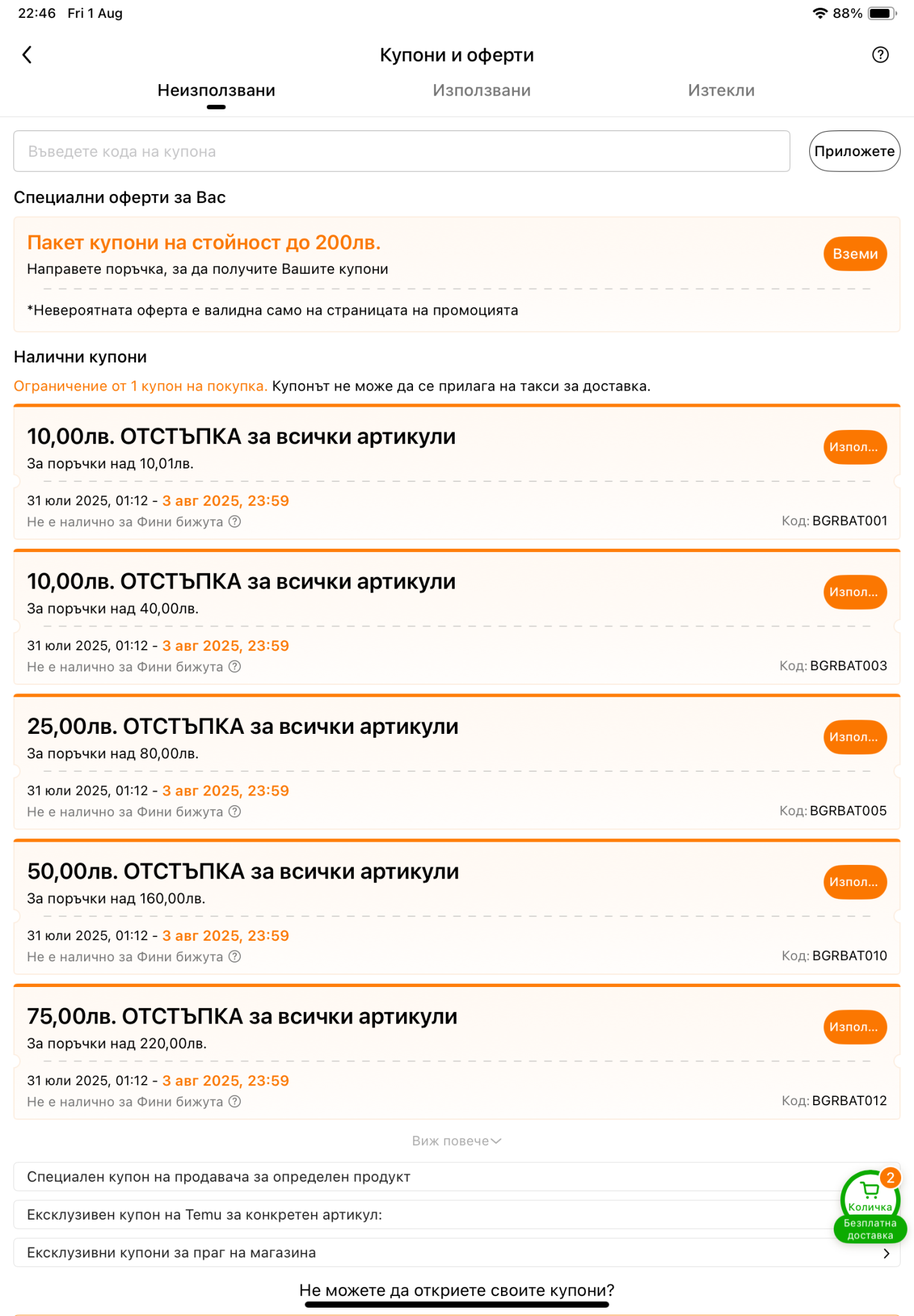 е кой ще се пробва да му изгори кредита за някакъв измислен купон? и аз гледах доста, но никъде не намерих условия - ама щом се опитват настоятелно при всяко връщане да го предлагат едва ли е добре